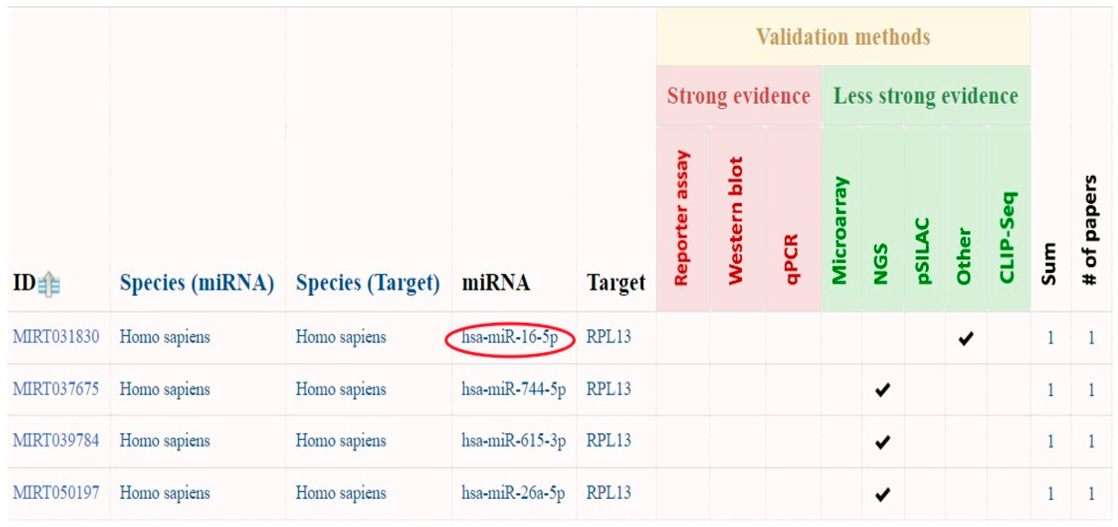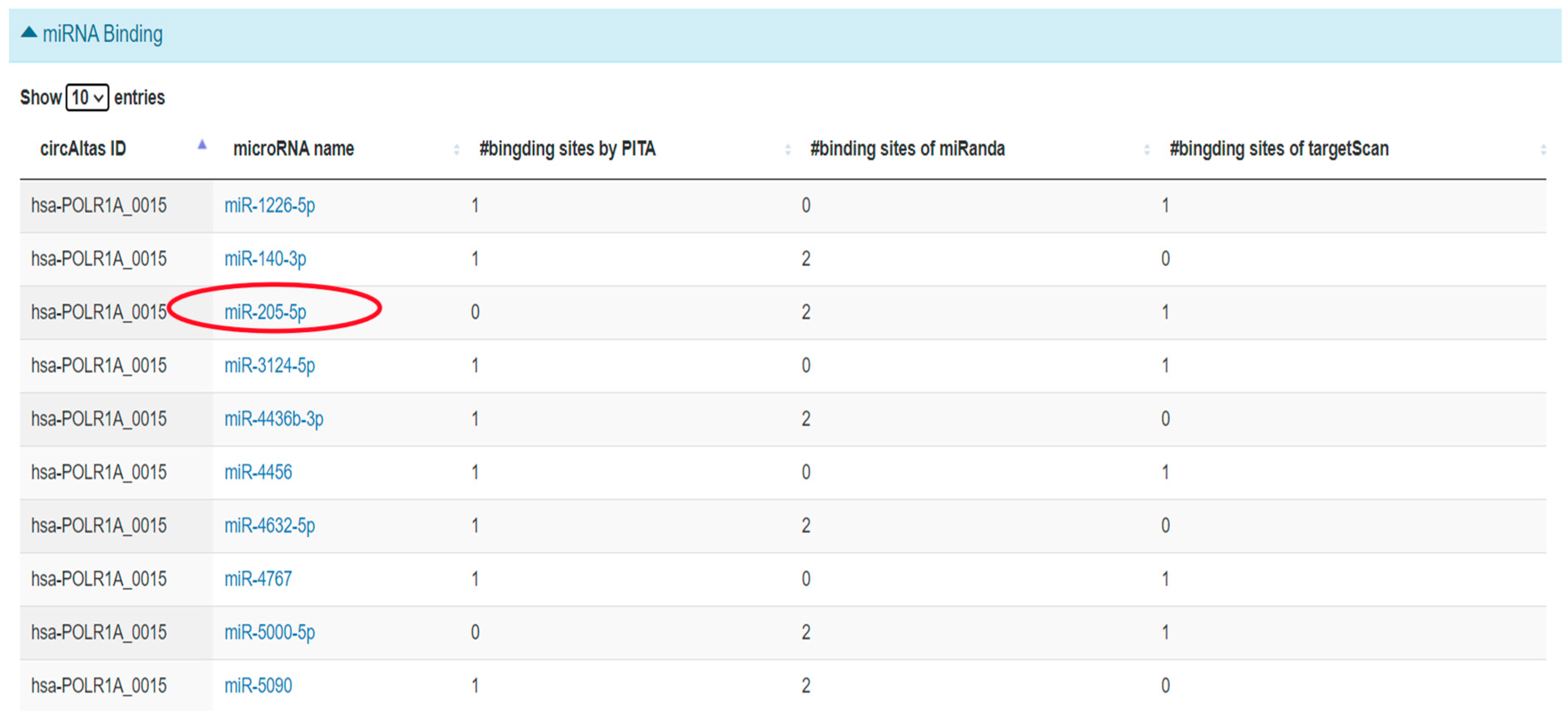 2.3.1. Prediction of circRNA_400029 miRNA Interactions Using miRTarBase