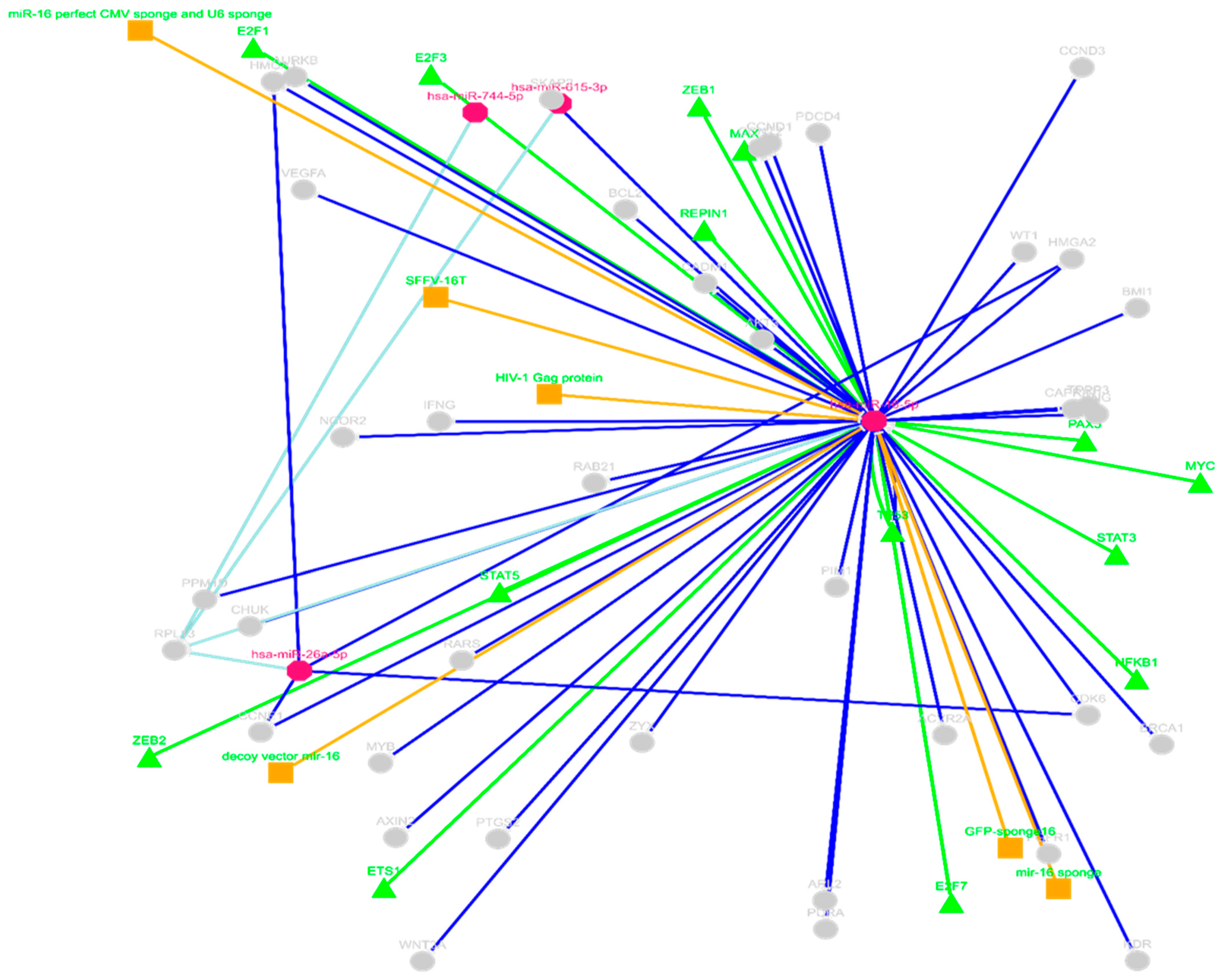 2.3.3. MiR-16-5p—Gene Target Pathway Analysis Using KEGG Pathway