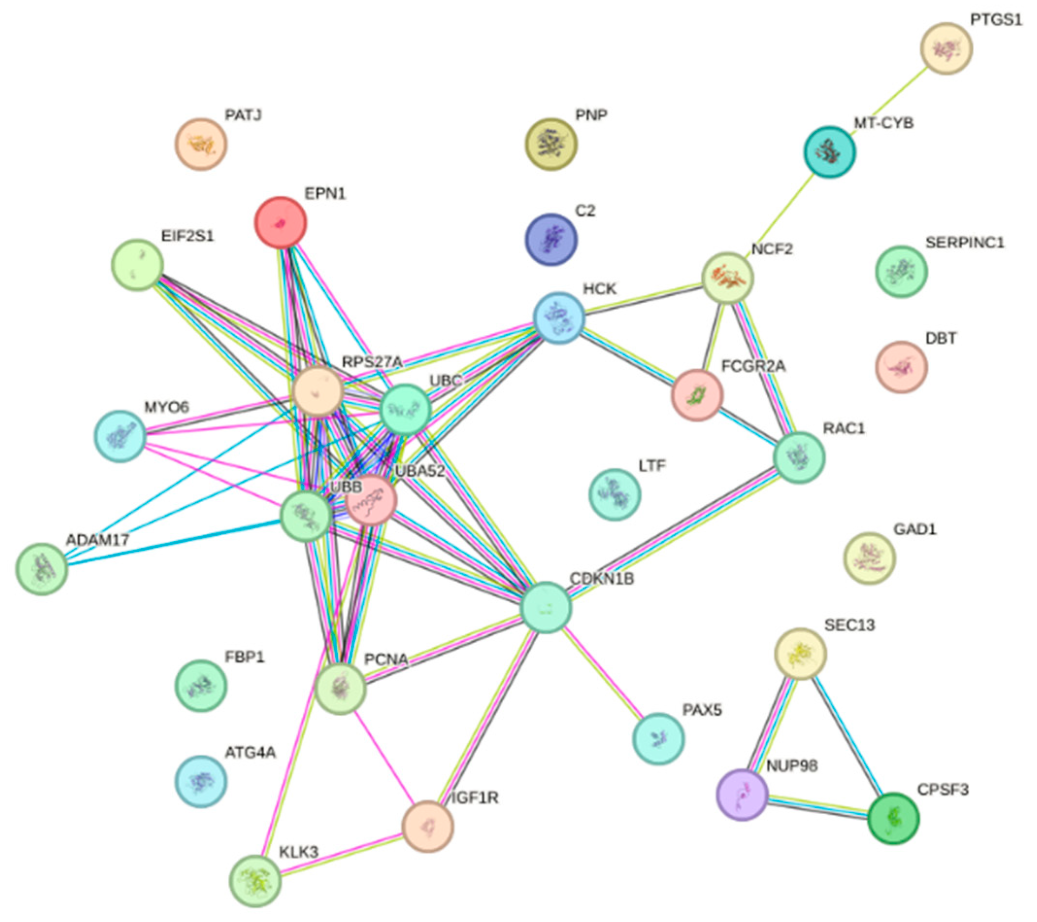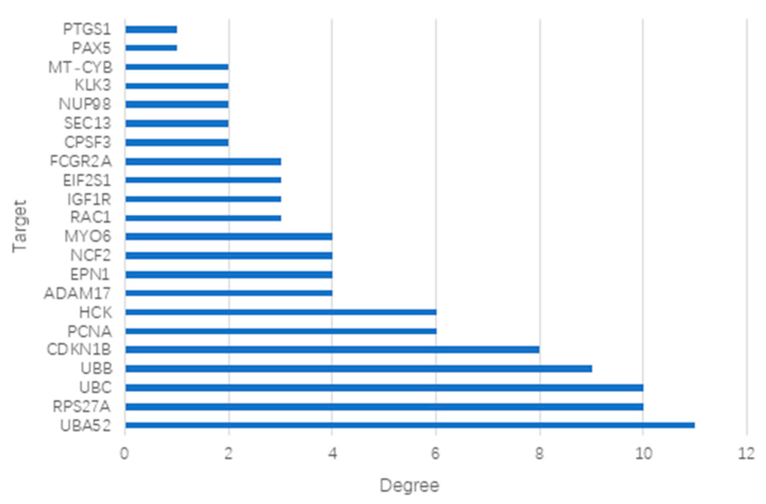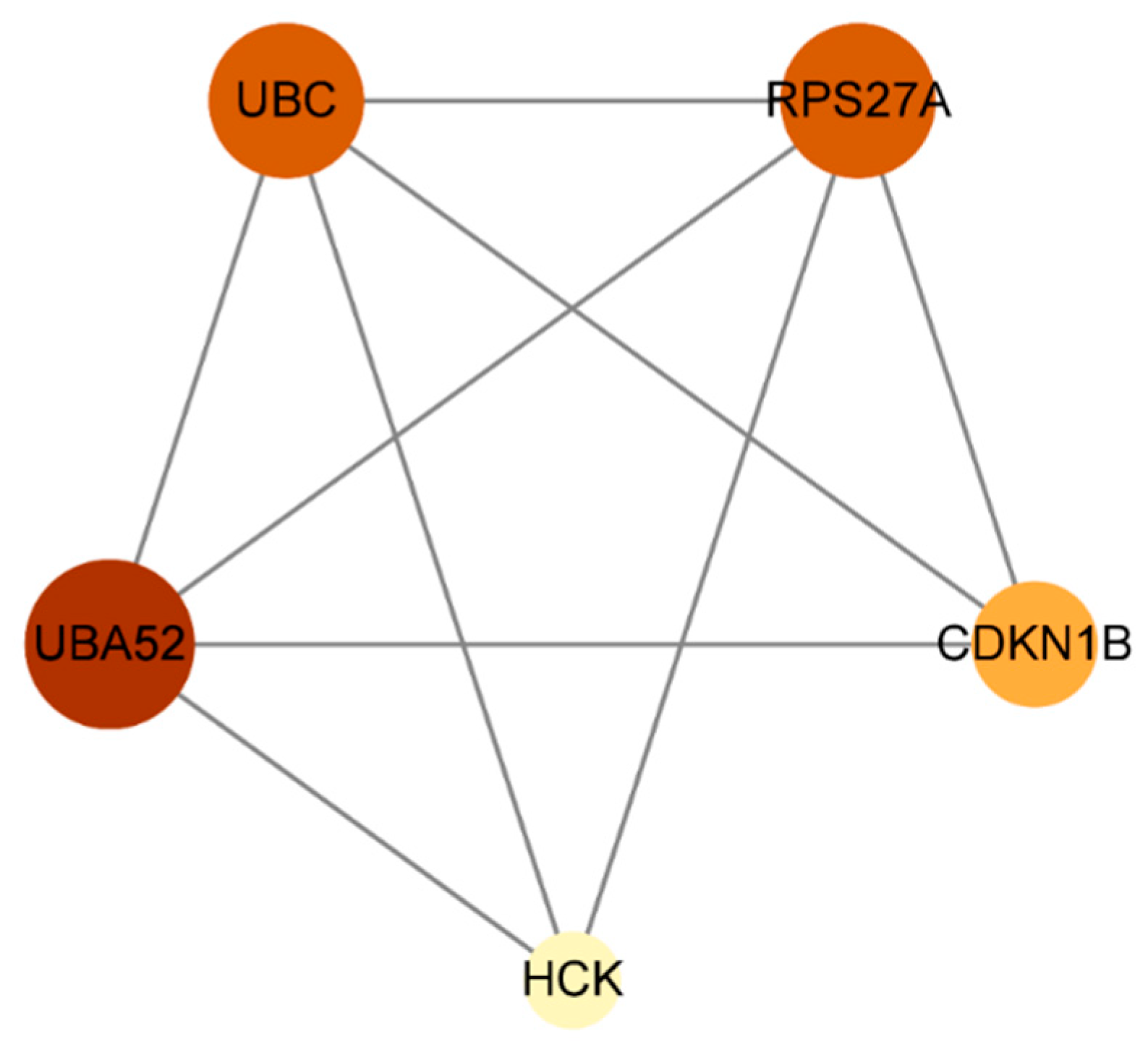 4.4. Construction and Analysis of the Protein–Protein Interaction Network