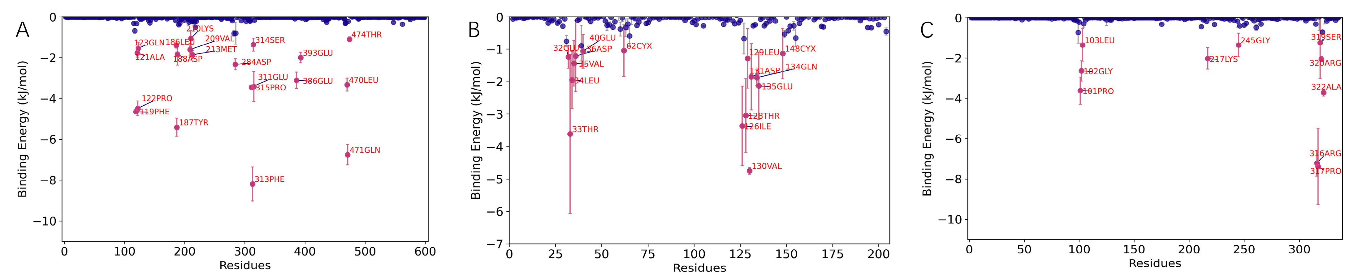 | Protein–Ligand | −159.84 ± 2.73 | −18.89 ± 7.83 | 60.75 ± 8.12 | −21.47 ± 0.09 | −139.44 ± 2.56 | 19.92 ± 2.25 | −119.52 ± 1.67 |