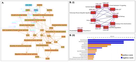 Based on the most significant DE genes, IPA software version 01-23-01 (Qiagen; Hilden, Germany) was used to identify (i) the most significantly affected molecular pathways, (ii) upstream regulator molecules like microRNA and transcription factors, (iii) downstream effects and biological processes, and (iv) causal networks predicted to be activated or inhibited in response to treatment [65].