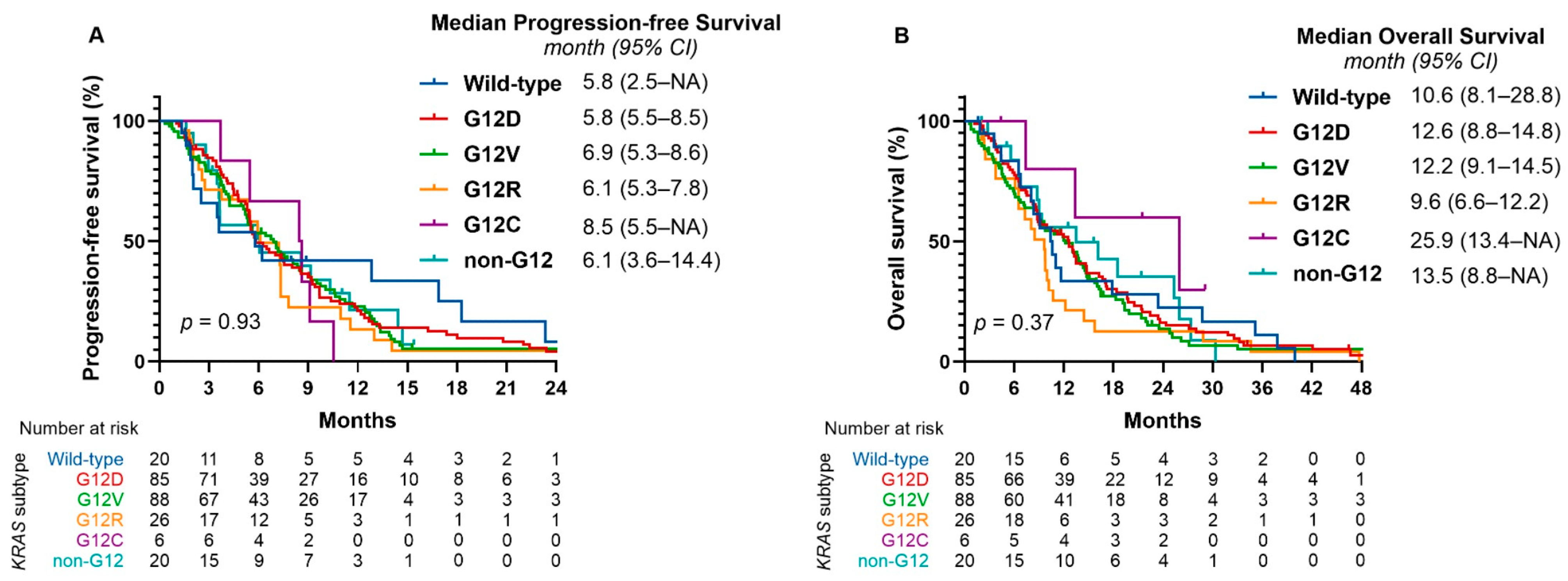 2.5. KRAS Mutation Subtypes and Treatment Outcomes