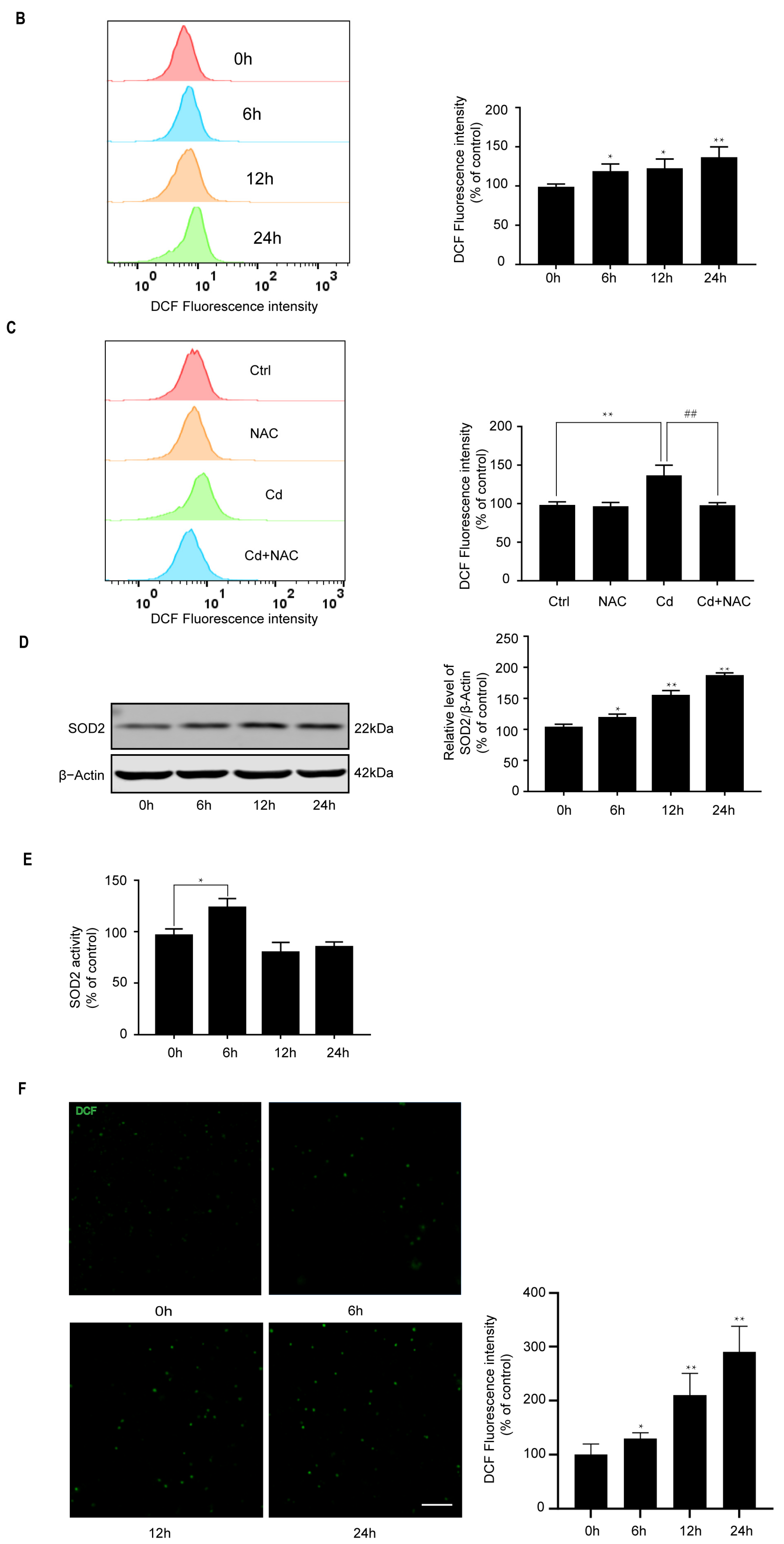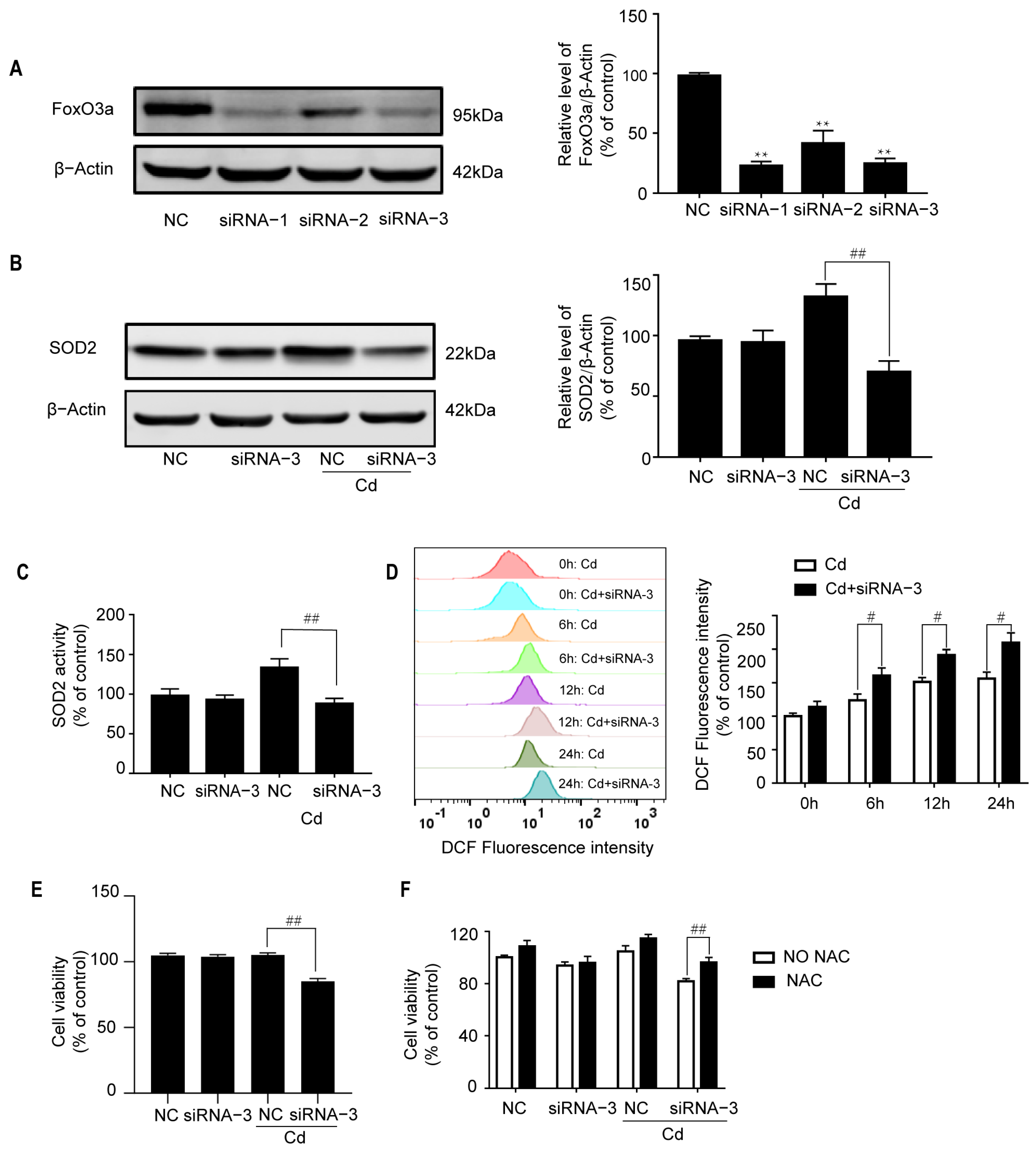 2.3. Knockdown of FoxO3a Increases Cd-Induced Oxidative Stress