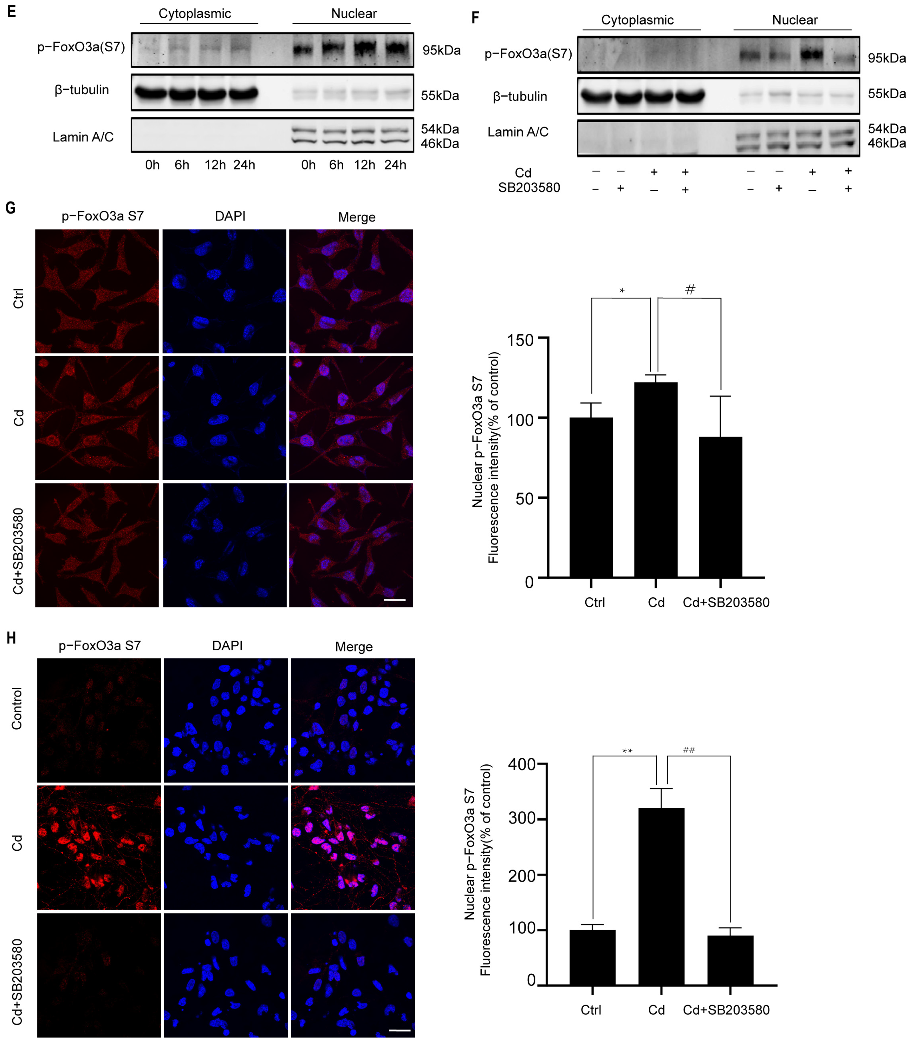 2.4. p38 Regulates the Cd-Induced Nuclear Expression of FoxO3a