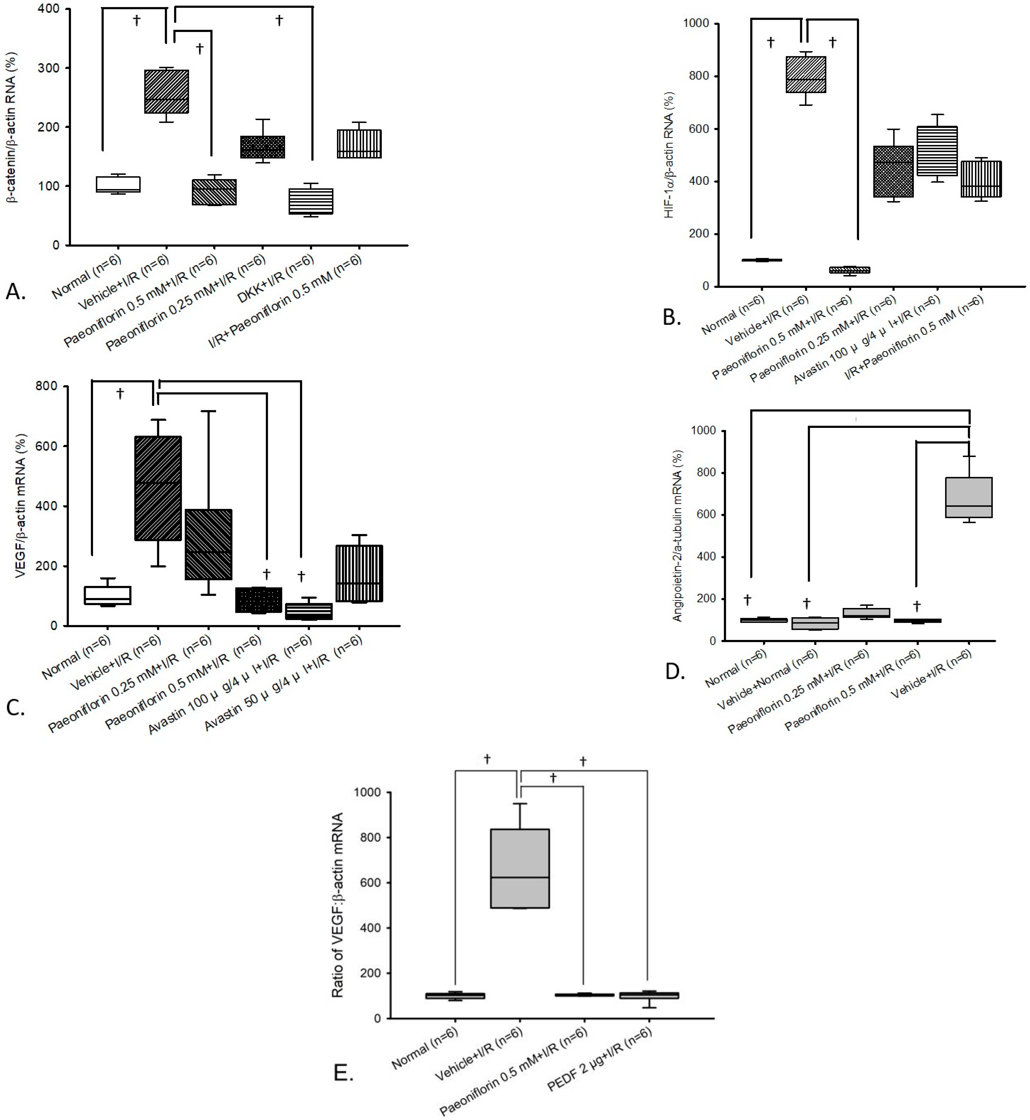 2.6. Comparison of PEDF (Anti-Angiogenic Agent) Versus Paeoniflorin on VEGF Expression Using mRNA Analysis