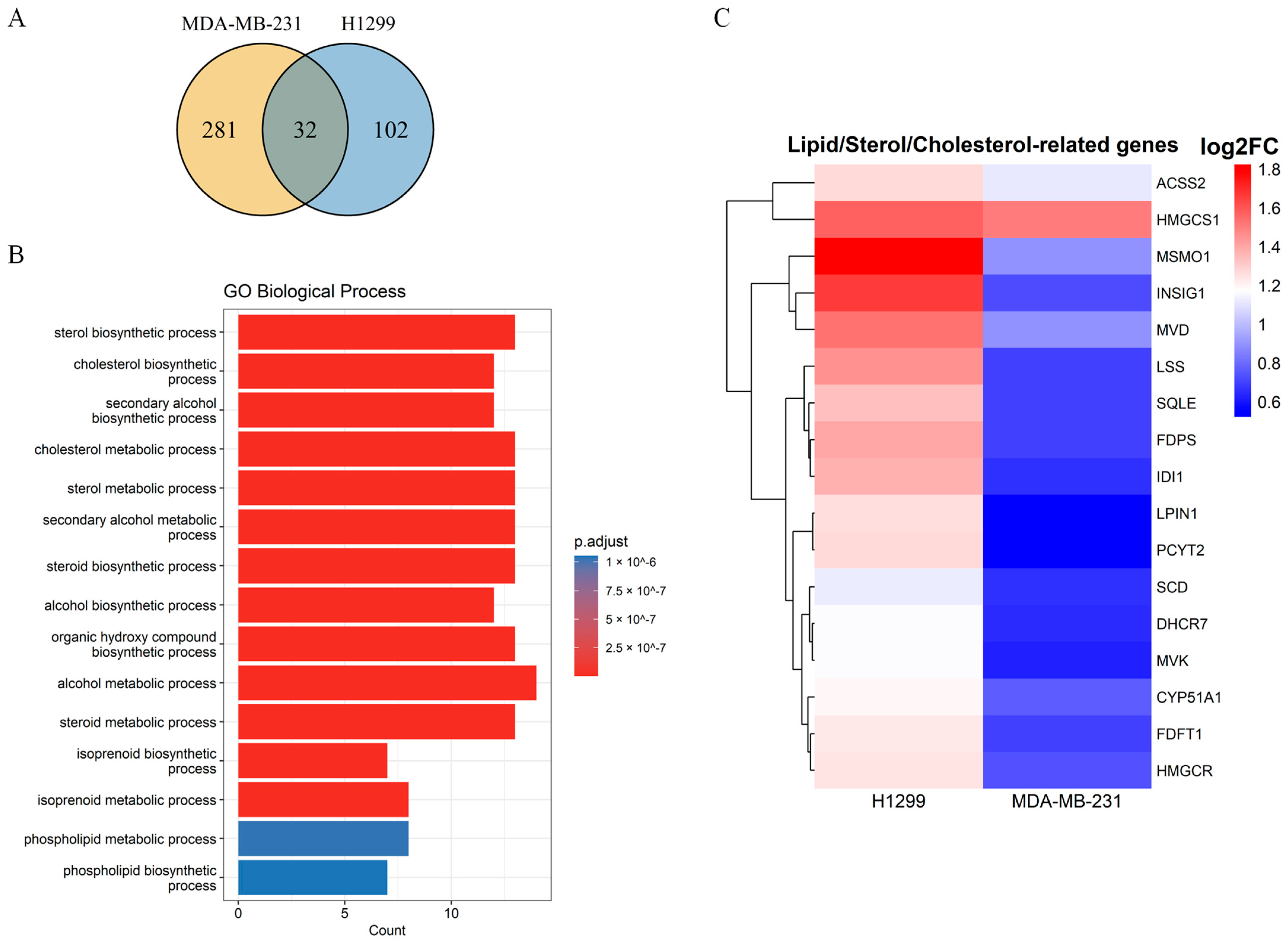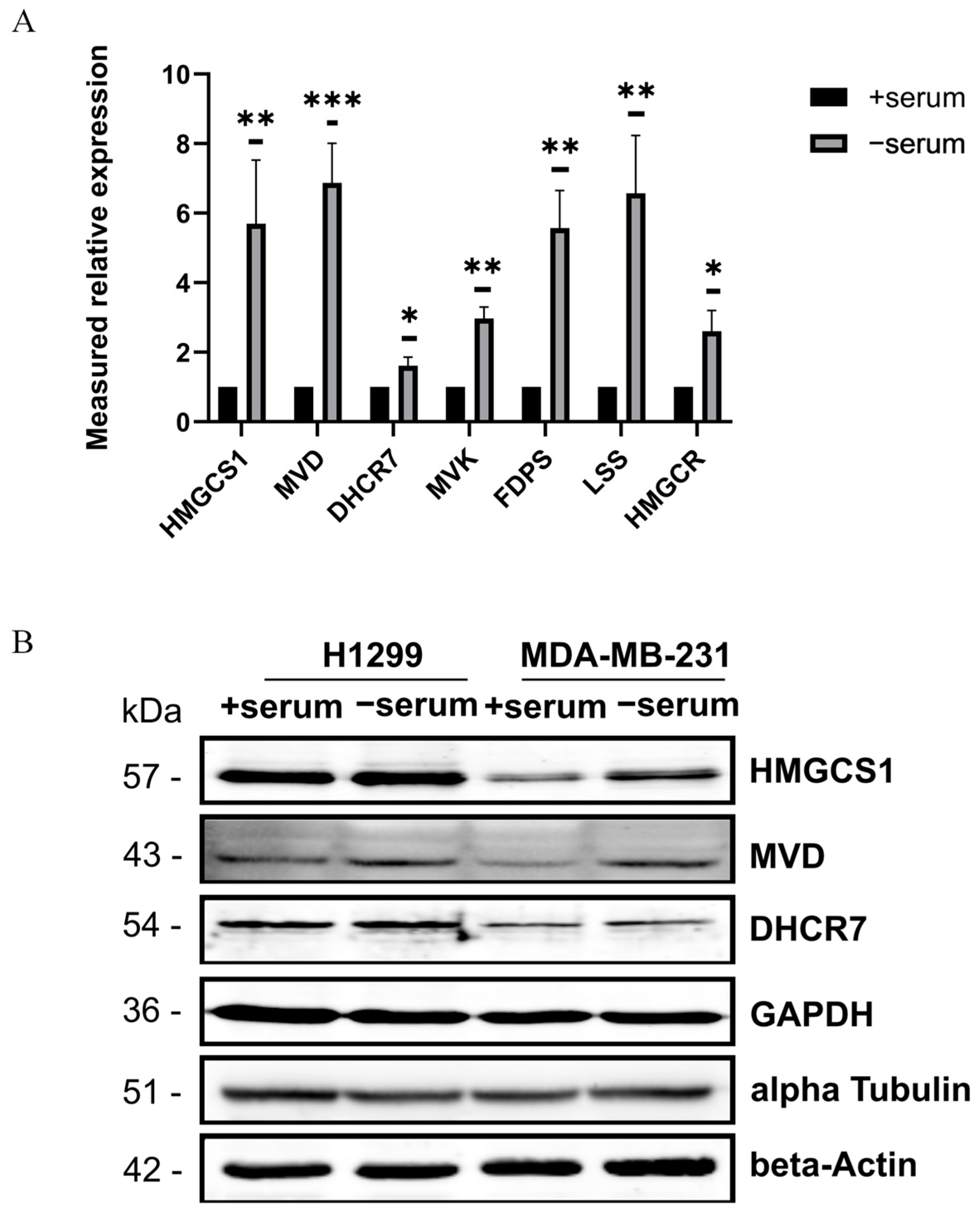 2.2. Transcriptomic Profiling Reveals Activation of Cholesterol Biosynthesis Pathway in Serum-Deprived Cancer Cells