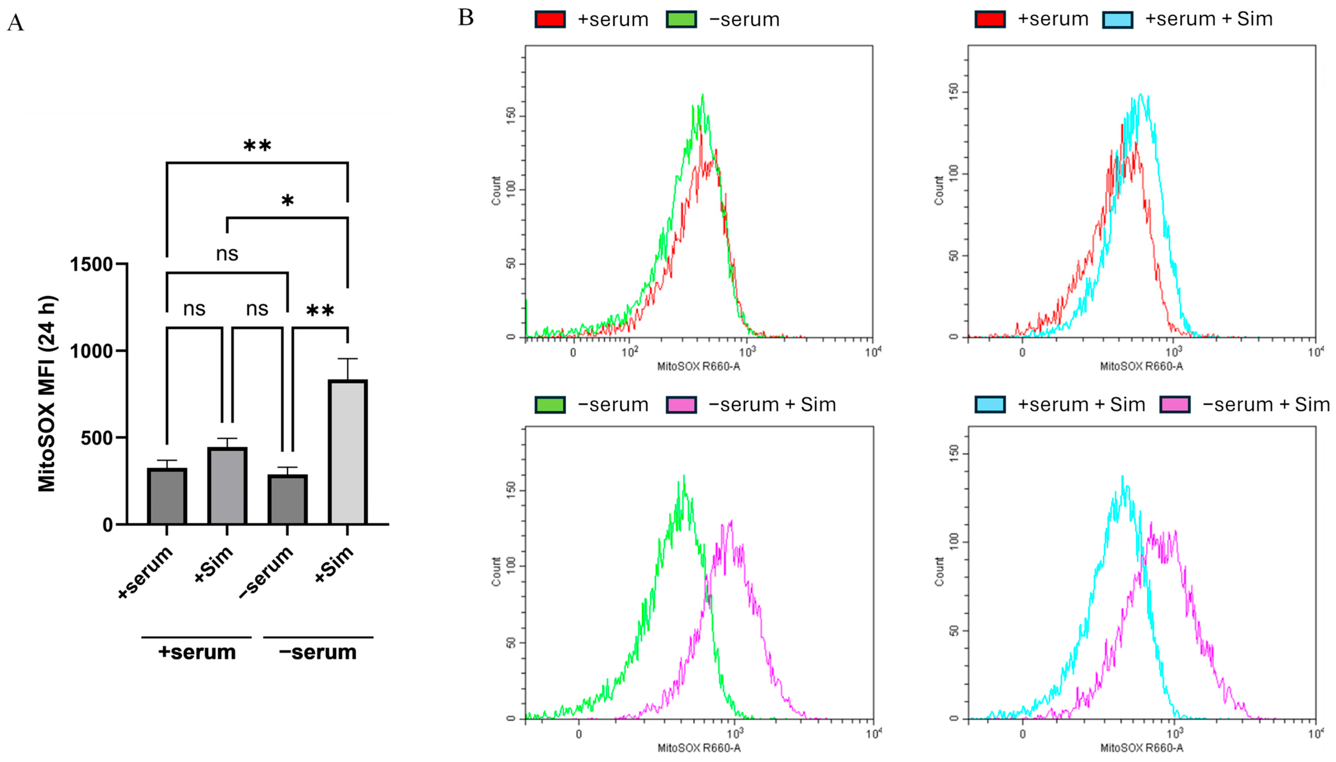 2.3. Simvastatin-Induced Apoptosis in Serum-Deprived Cancer Cells Mediated by a Mitochondrial ROS Generation