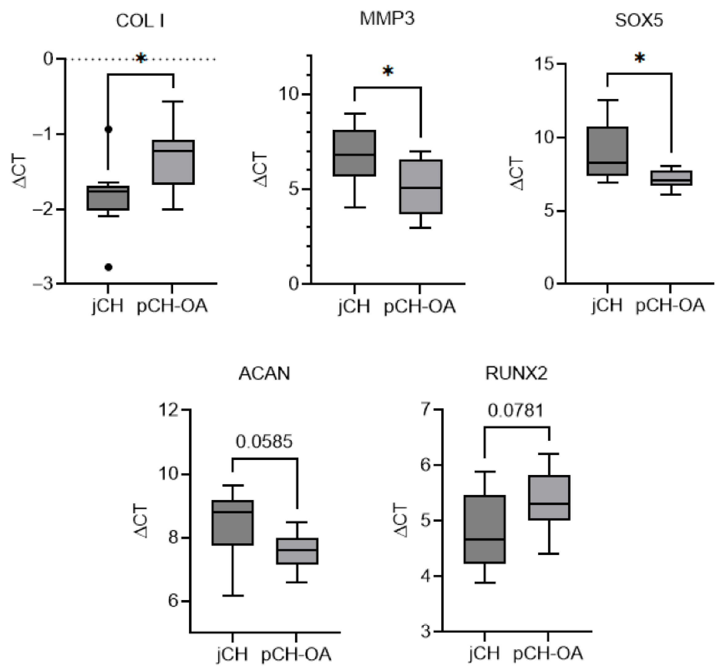 | COL1 | jCH | 9 | −1.84 | 0.48 | 0.93 | 0.021 * | 1.20 |