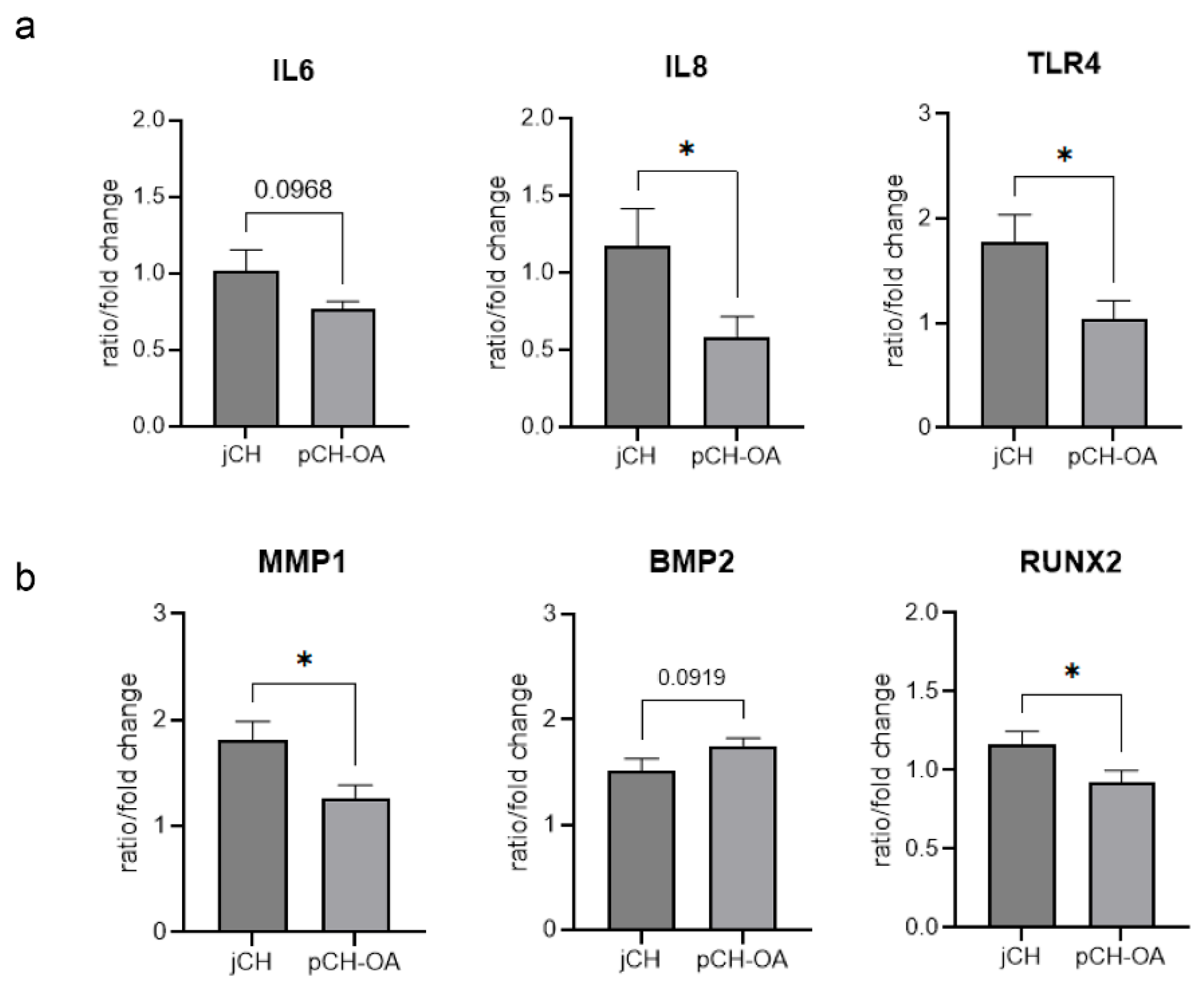 | RUNX2 | jCH | 9 | 1.16 | 0.25 | 0.706 | 0.048 * | 1.01 |