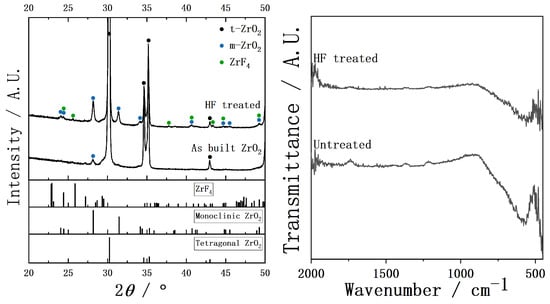 XRD and FTIR of YSZ plates before and after HF treatment.