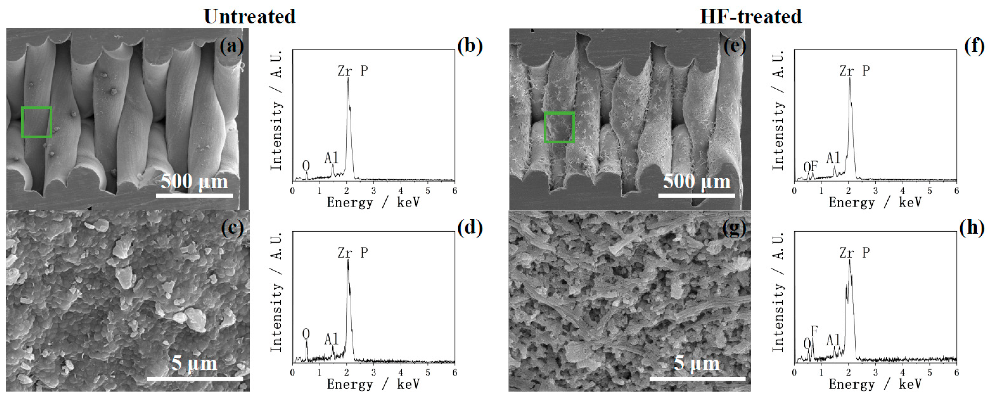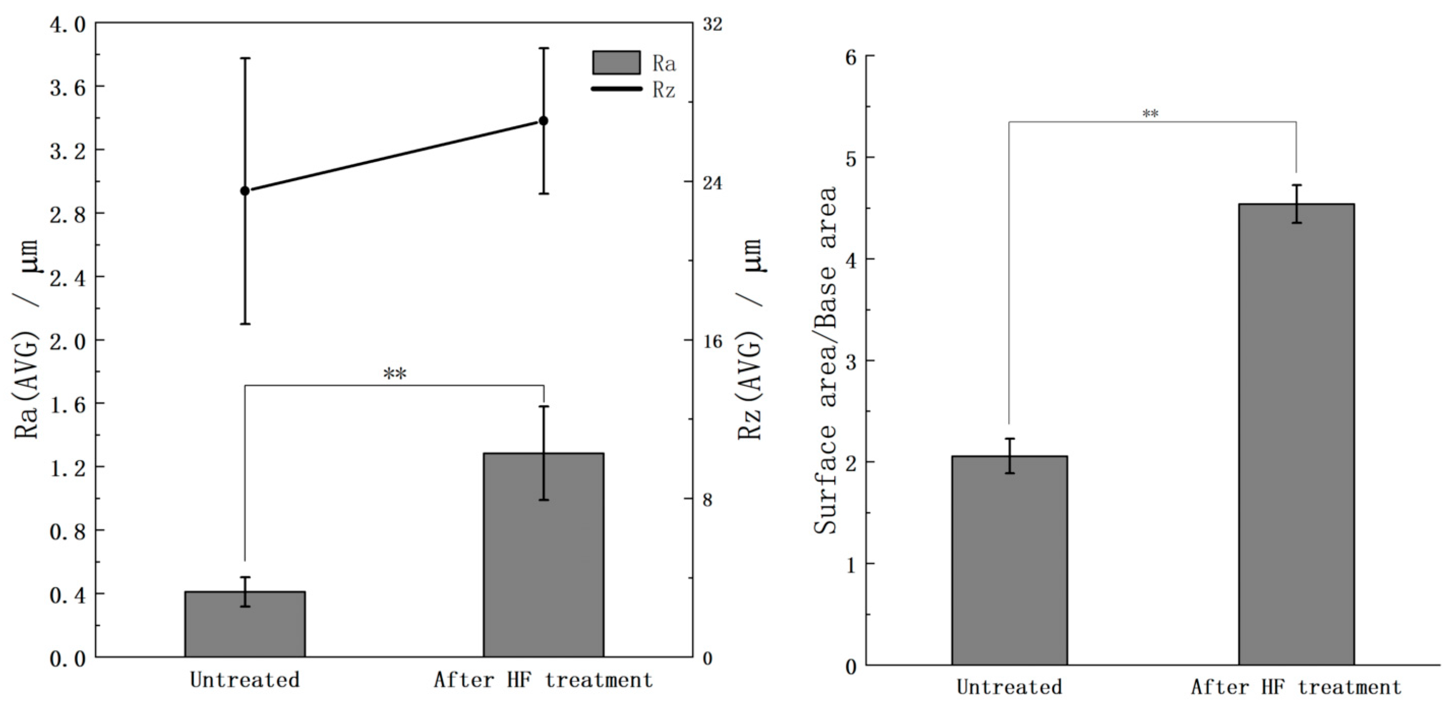 2.1. Surface Morphology Before and After HF Treatment