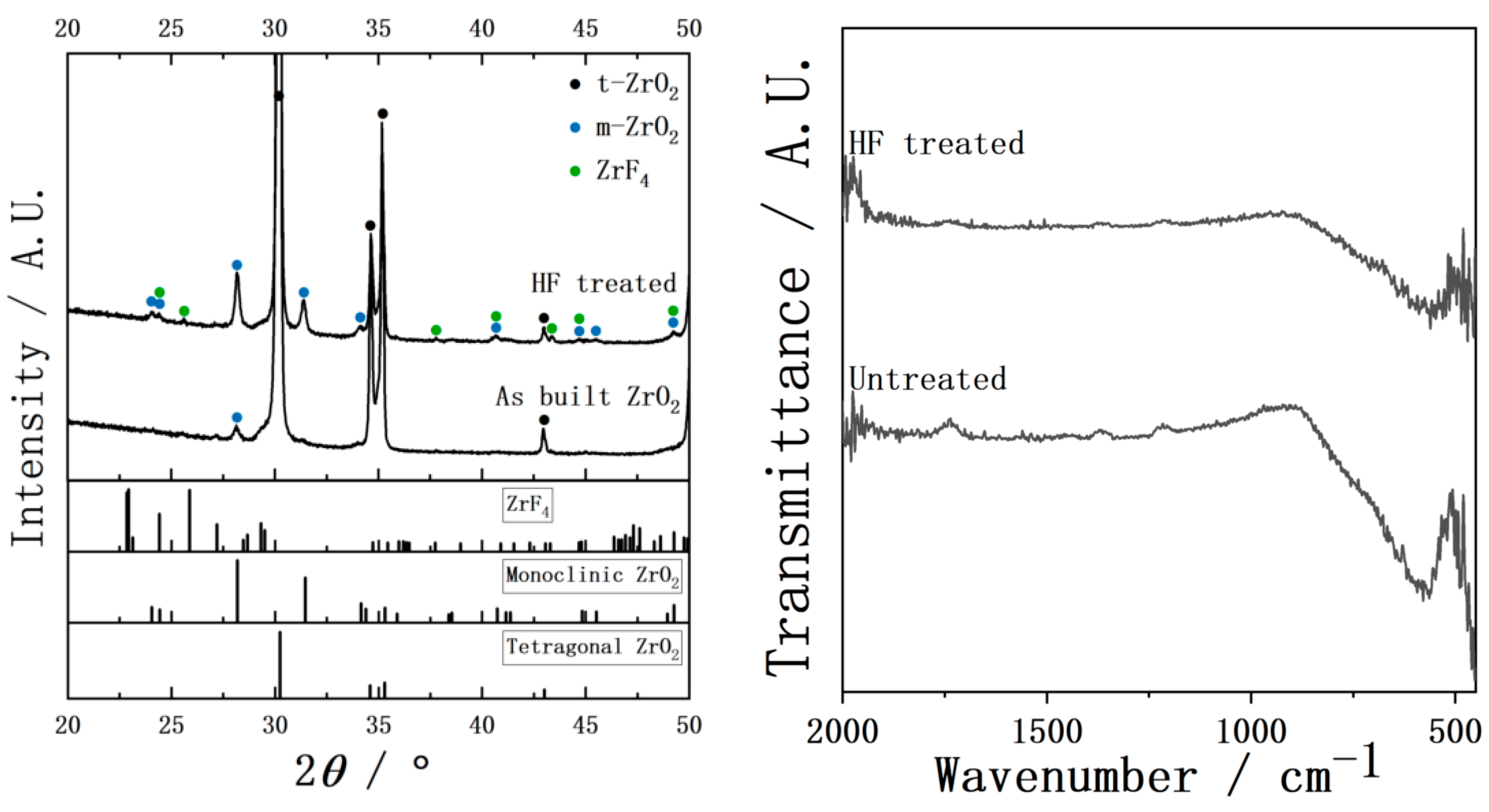 - Toraya, H.; Yoshimura, M.; Somiya, S. Calibration Curve for Quantitative Analysis of the Monoclinic-Tetragonal ZrO2 System by X-Ray Diffraction. J. Am. Ceram. Soc. 1984, 67, C-119–C-121. [Google Scholar] [CrossRef]