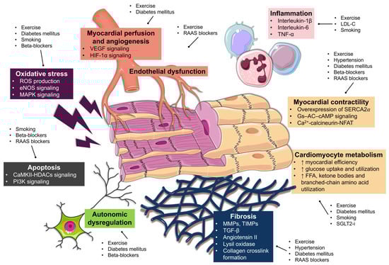 - Leosco, D.; Rengo, G.; Iaccarino, G.; Golino, L.; Marchese, M.; Fortunato, F.; Zincarelli, C.; Sanzari, E.; Ciccarelli, M.; Galasso, G.; et al. Exercise Promotes Angiogenesis and Improves β-Adrenergic Receptor Signalling in the Post-Ischaemic Failing Rat Heart. Cardiovasc. Res. 2008, 78, 385–394. [Google Scholar] [CrossRef]