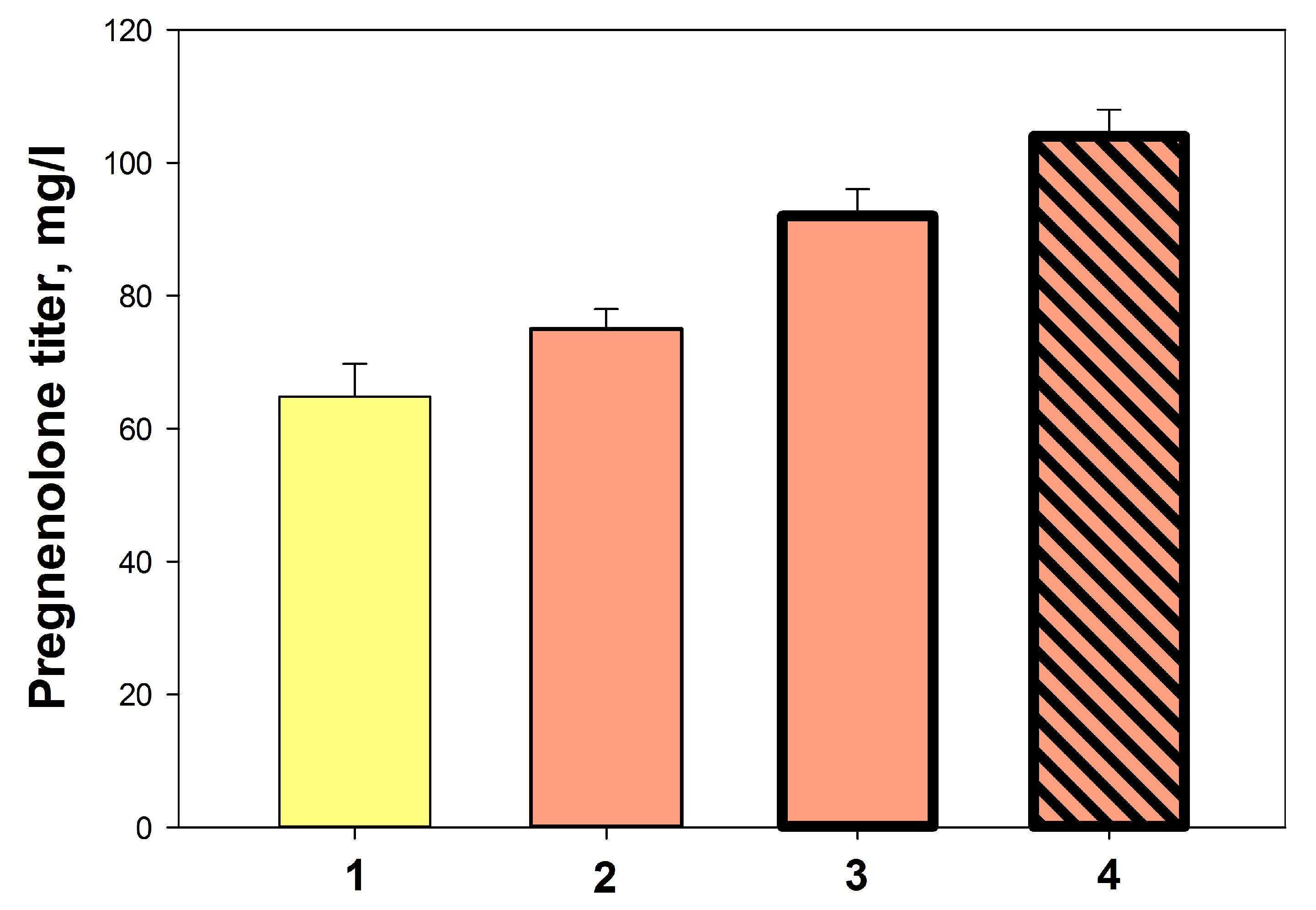 2.1. Creation of Recombinant Strains of M. Extorquens AM1 Providing Bioconversion of Cholesterol to Pregnenolone