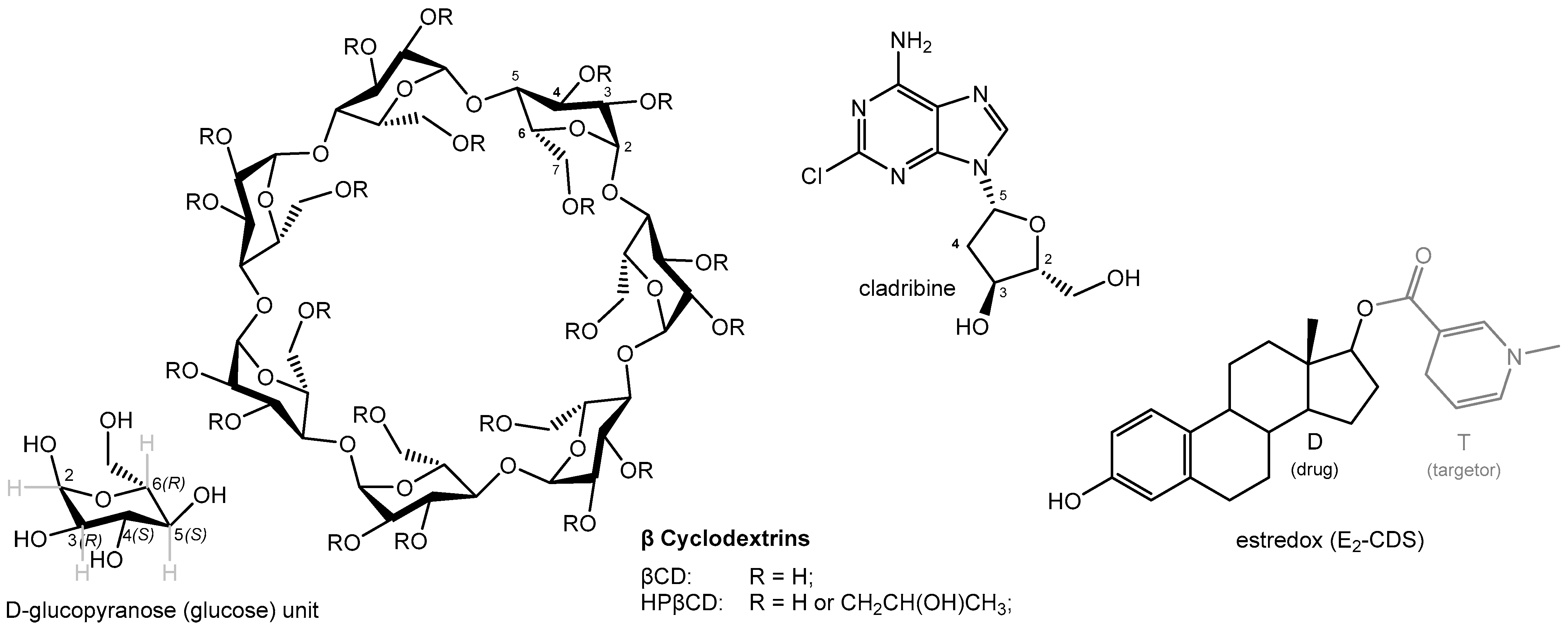 - Van Axel Castelli, V.; Trivieri, G.; Zucchelli, I.; Brambilla, L.; Barbuzzi, T.; Castiglioni, C.; Paci, M.; Zerbi, G.; Zanol, M. Characterisation of an inclusion complex between cladribine and 2-hydroxypropyl-beta-cyclodextrin. J. Pharm. Sci. 2008, 97, 3897–3906. [Google Scholar] [CrossRef]