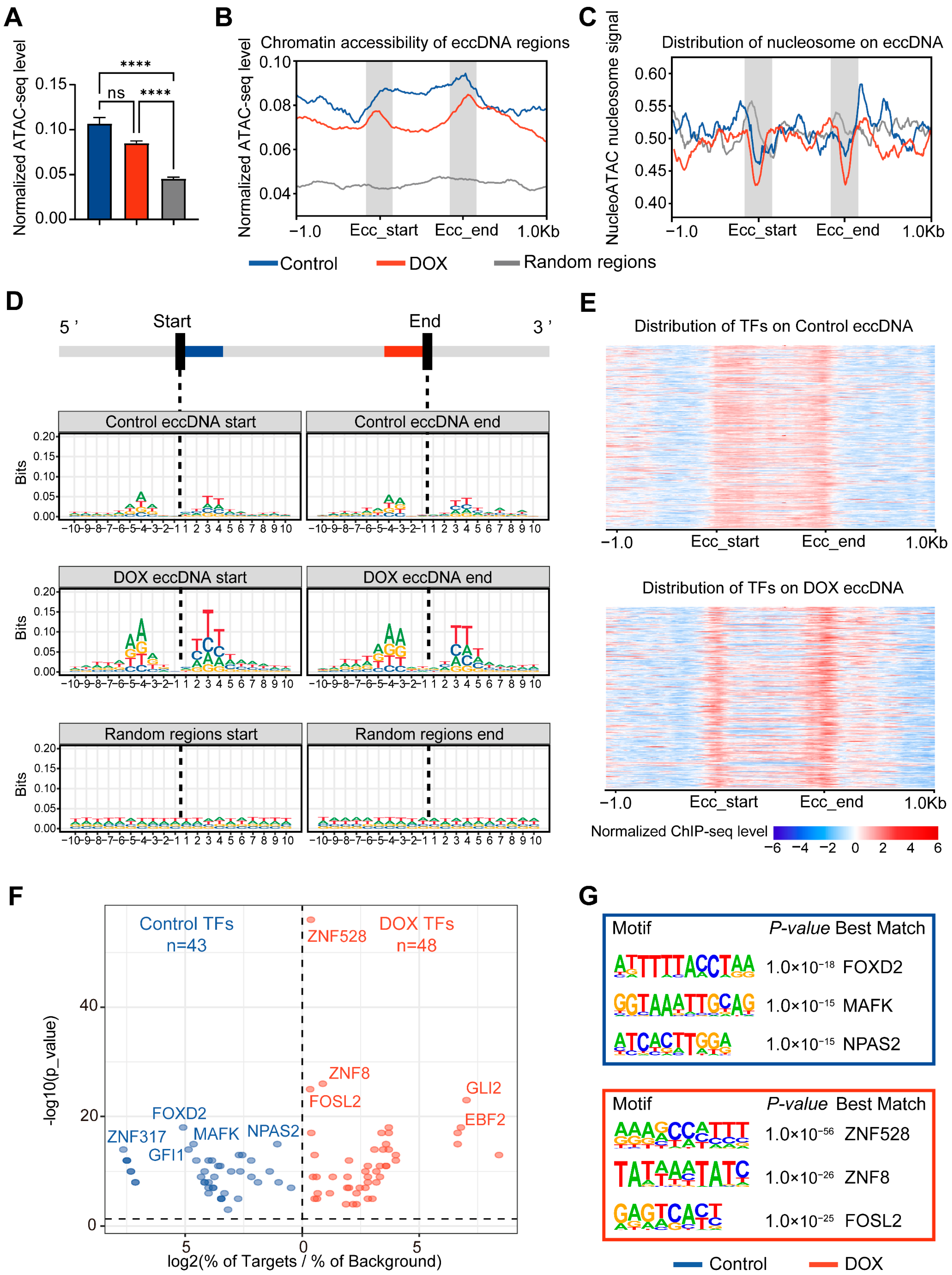 2.3. EccDNA Breakpoints Are Associated with High Chromatin Accessibility and Transcription Factor Enrichment