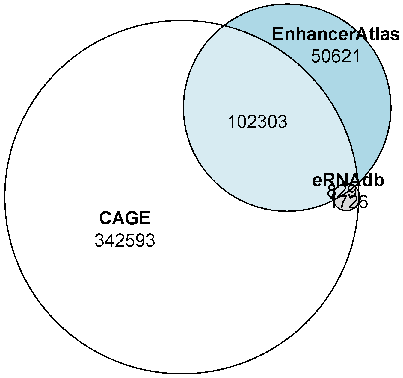 We performed initial enhancer prediction from CAGE data using the approach of extracting bidirectional promoters distant from known gene loci with the use of clusetring of CTSS expression [