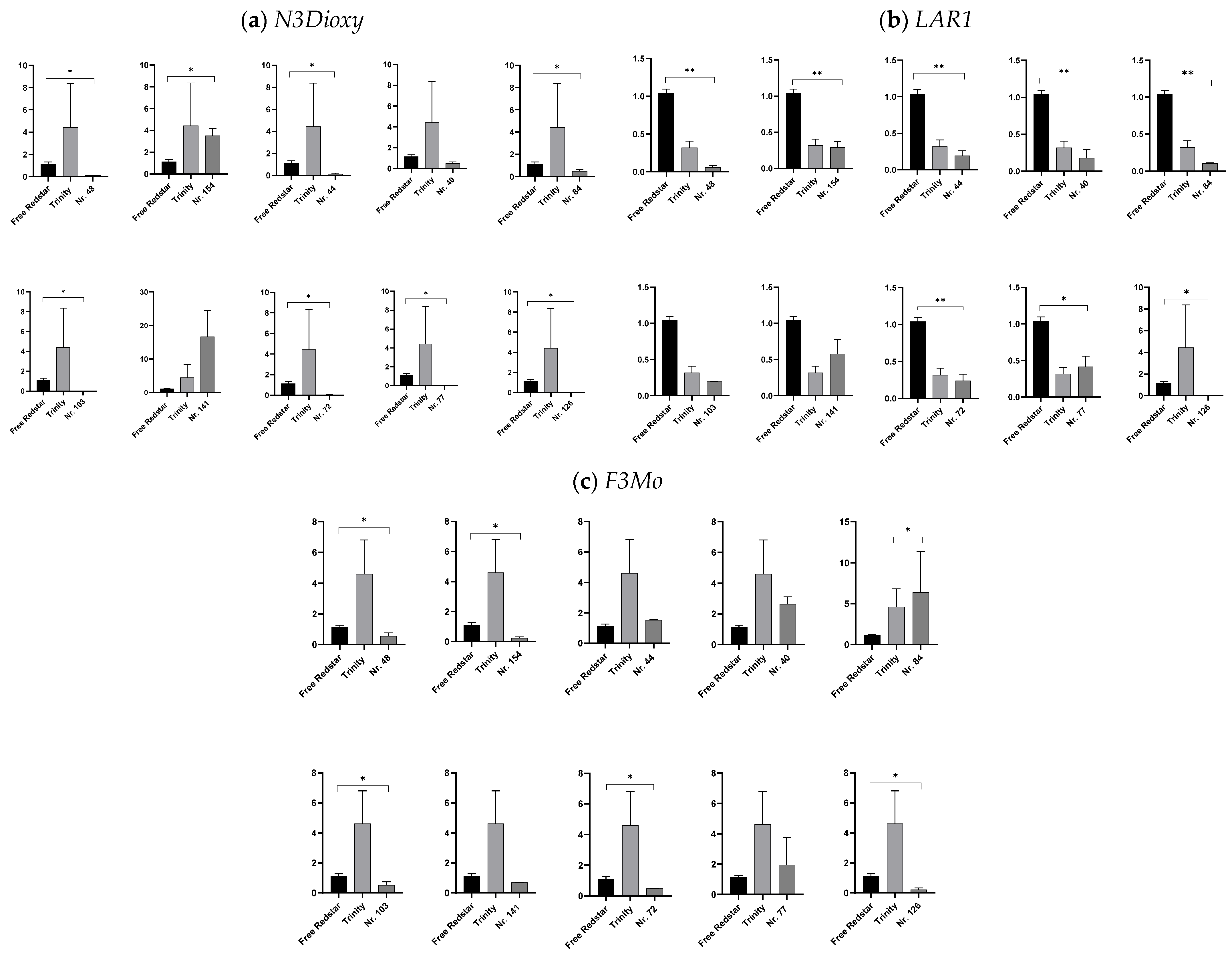 - Pinheiro, T.T.; Nishimura, D.S.; De Nadai, F.B.; Figueira, A.; Latado, R.R. Selection of reference genes for expression analyses of red-fleshed sweet orange (Citrus sinensis). Genet. Mol. Res. 2015, 14, 18440–18451. [Google Scholar] [CrossRef]