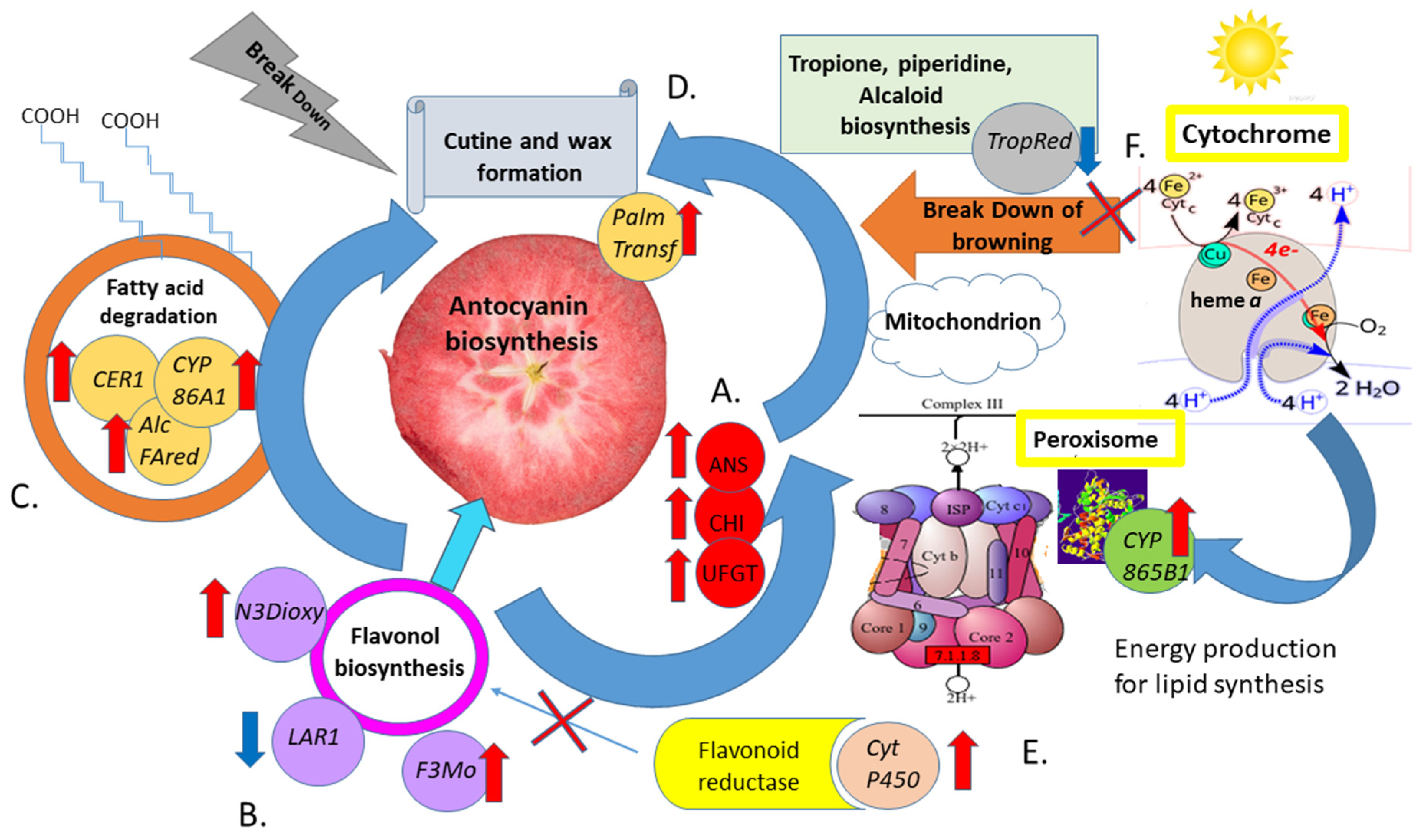 - Liu, H.; Liu, Z.; Wu, Y.; Zheng, L.; Zhang, G. Regulatory Mechanisms of Anthocyanin Biosynthesis in Apple and Pear. Int. J. Mol. Sci. 2021, 22, 8441. [Google Scholar] [CrossRef]