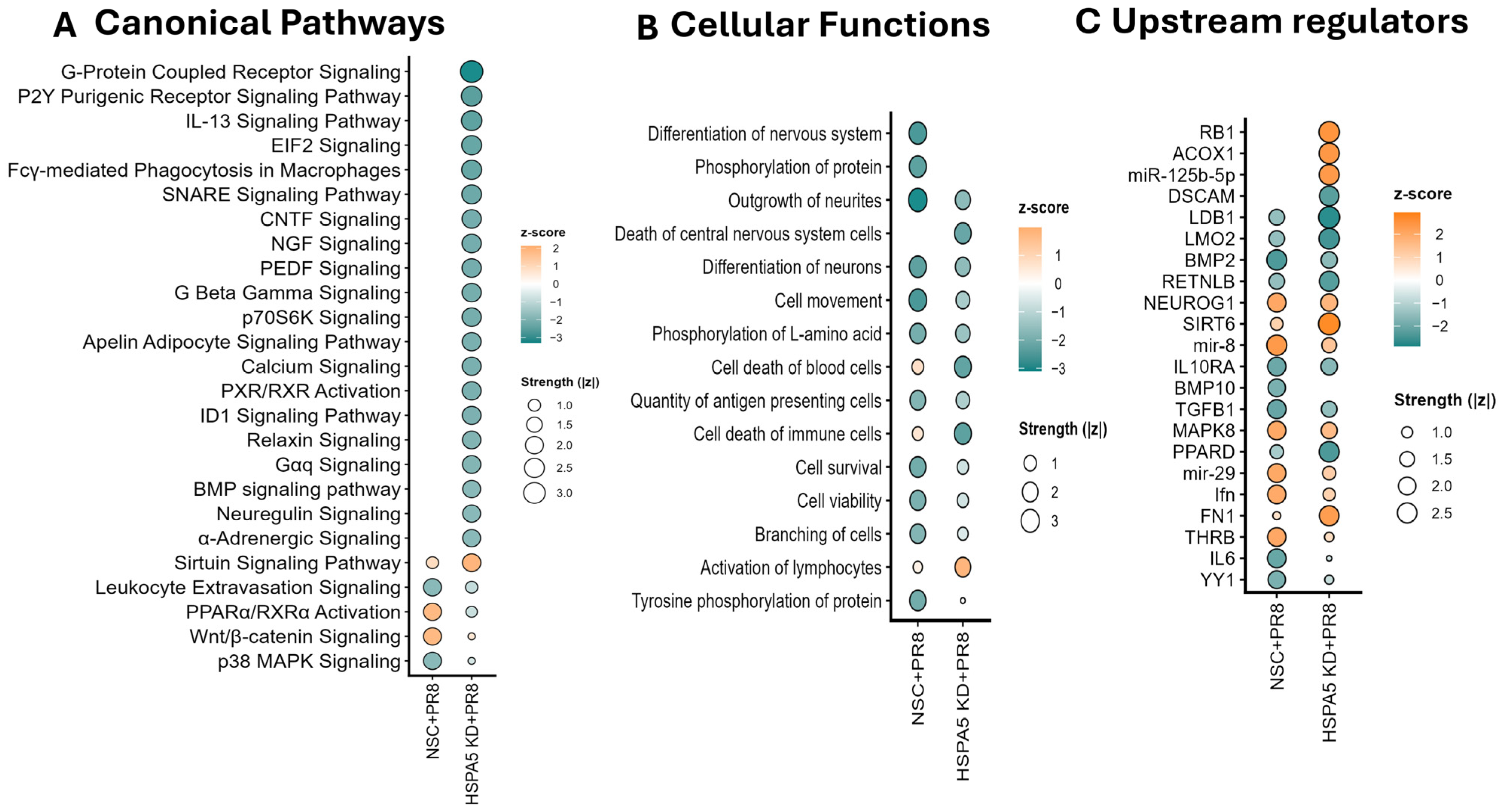 3.2. HSPA5 KD Causes Differential Regulation of Cellular Functions and Signaling Pathways During IAV Infection