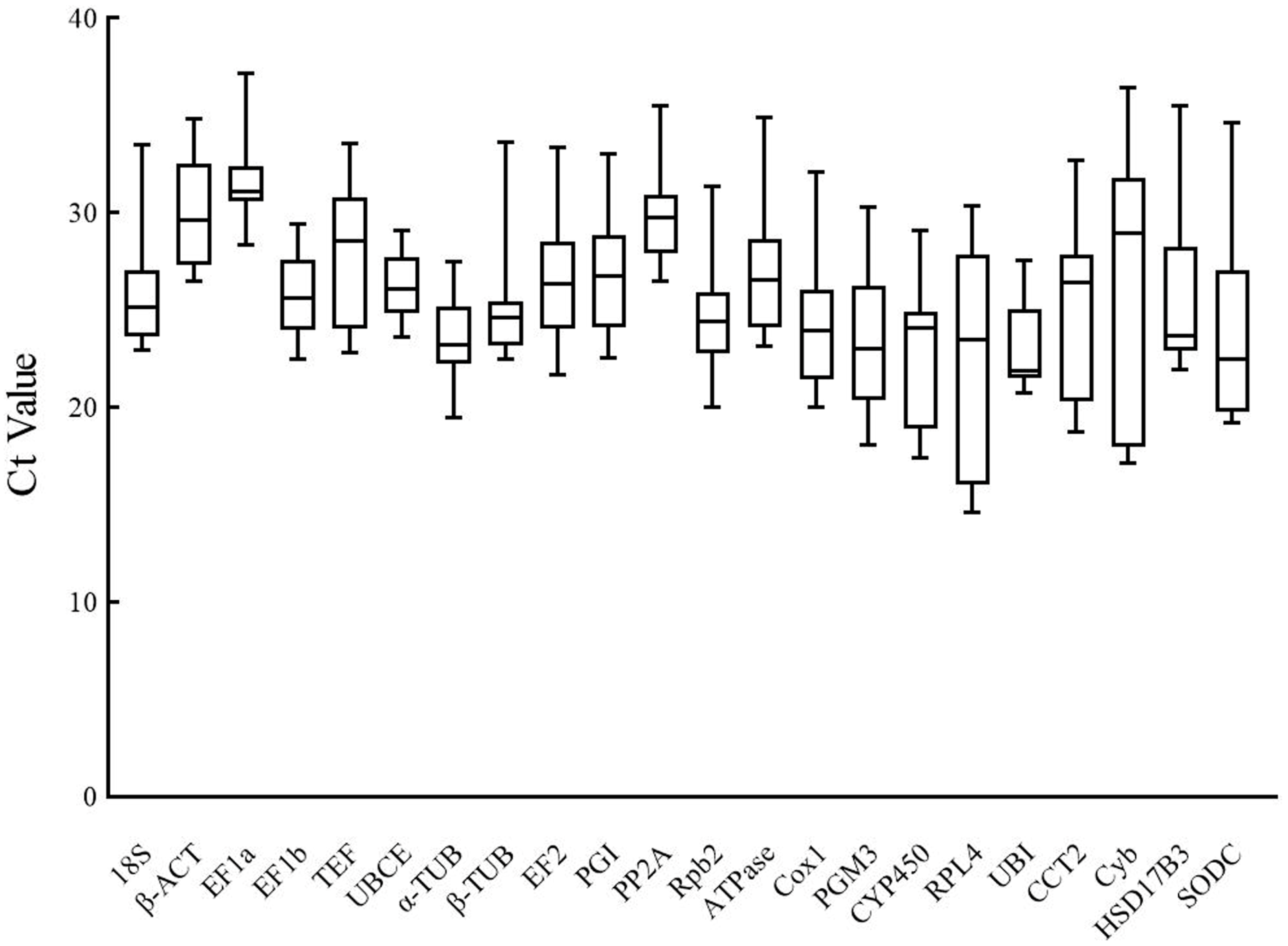| EF1a | 4 | 21 | 19 | 22 | 22 | 22 | 20 | 9 |