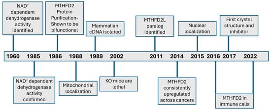 Timeline of major milestones and advancements for MTHFD2.