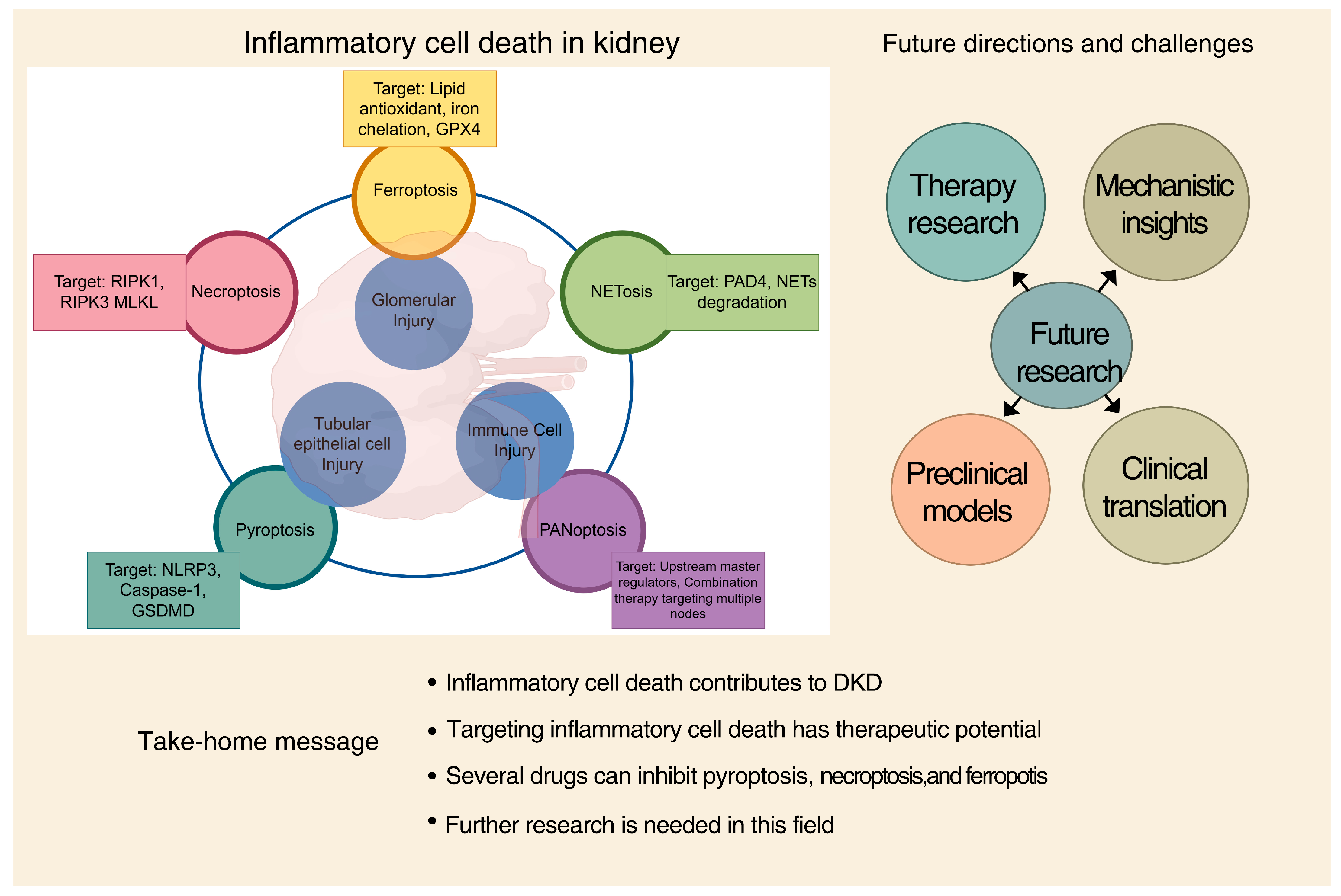 Chicago/Turabian StyleFang, Bin, Wei Huang, Sijia Du, Yu Hao, Fangfang He, and Chun Zhang. 2025. "The Inflammatory Cell Death in Diabetic Kidney Disease: Integrating Multifactorial Mechanisms into Novel Therapeutics" International Journal of Molecular Sciences 26, no. 22: 11033. https://doi.org/10.3390/ijms262211033