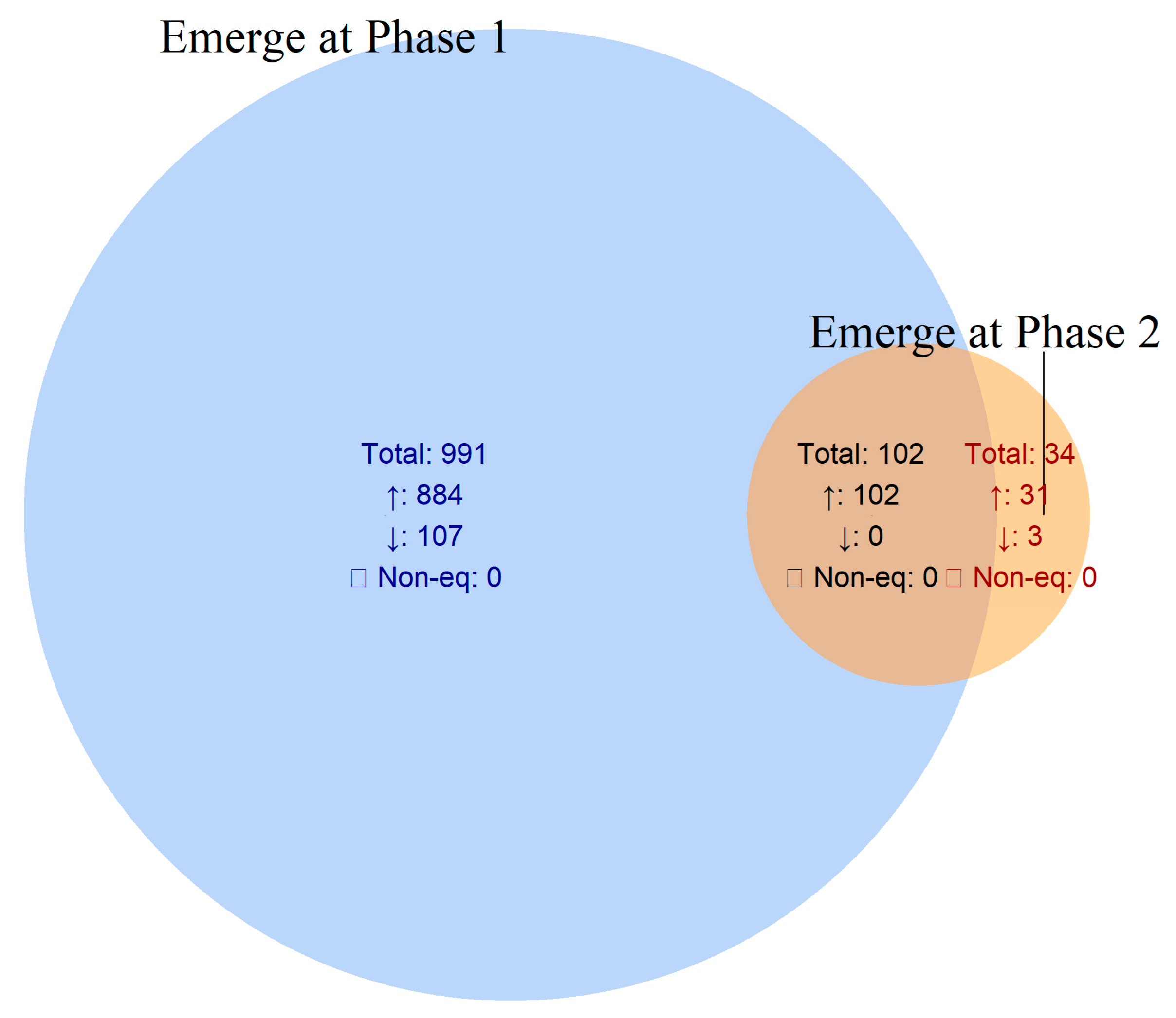 Table 2 provides a detailed summary of common and phase-specific DEGs identified in