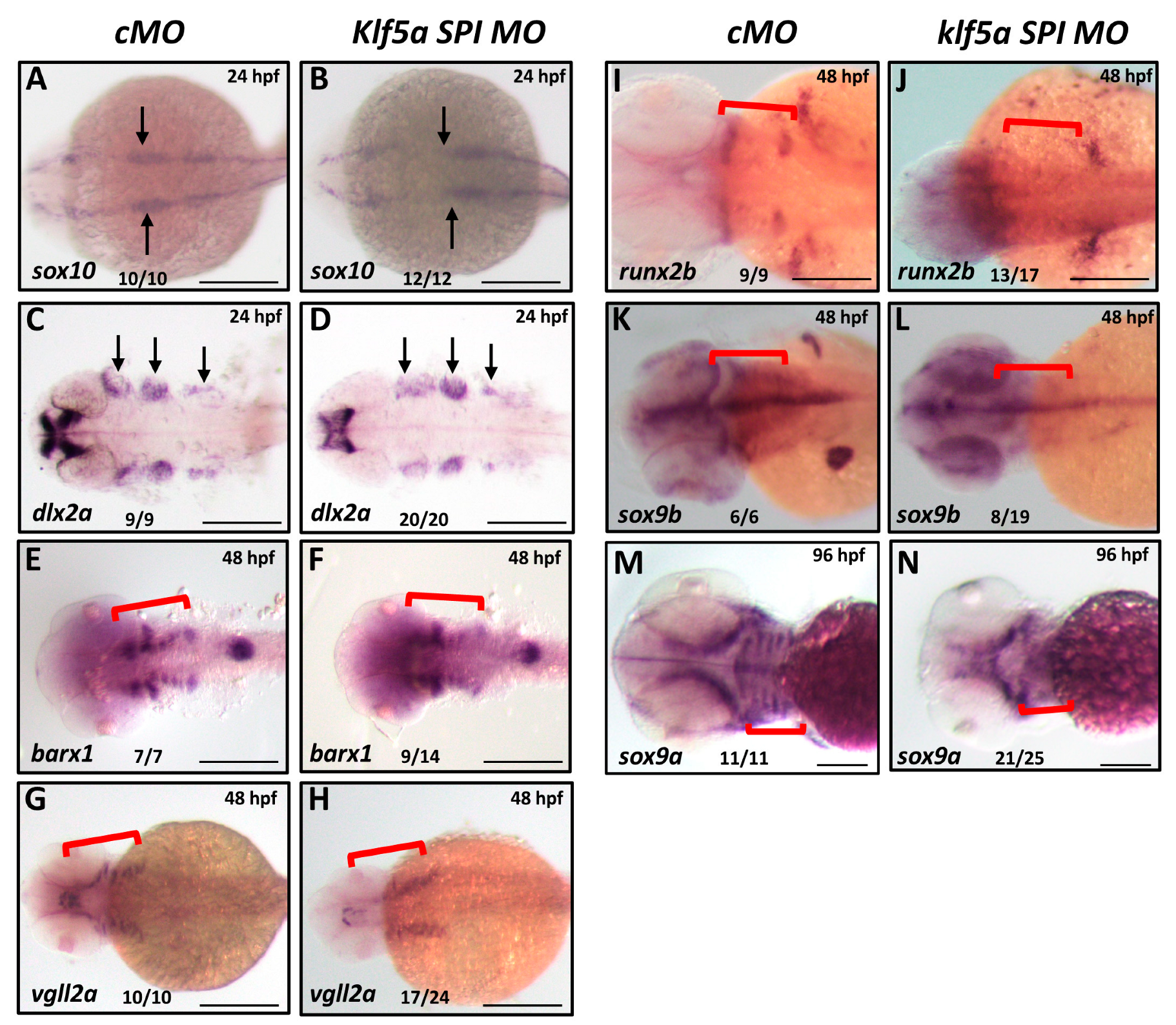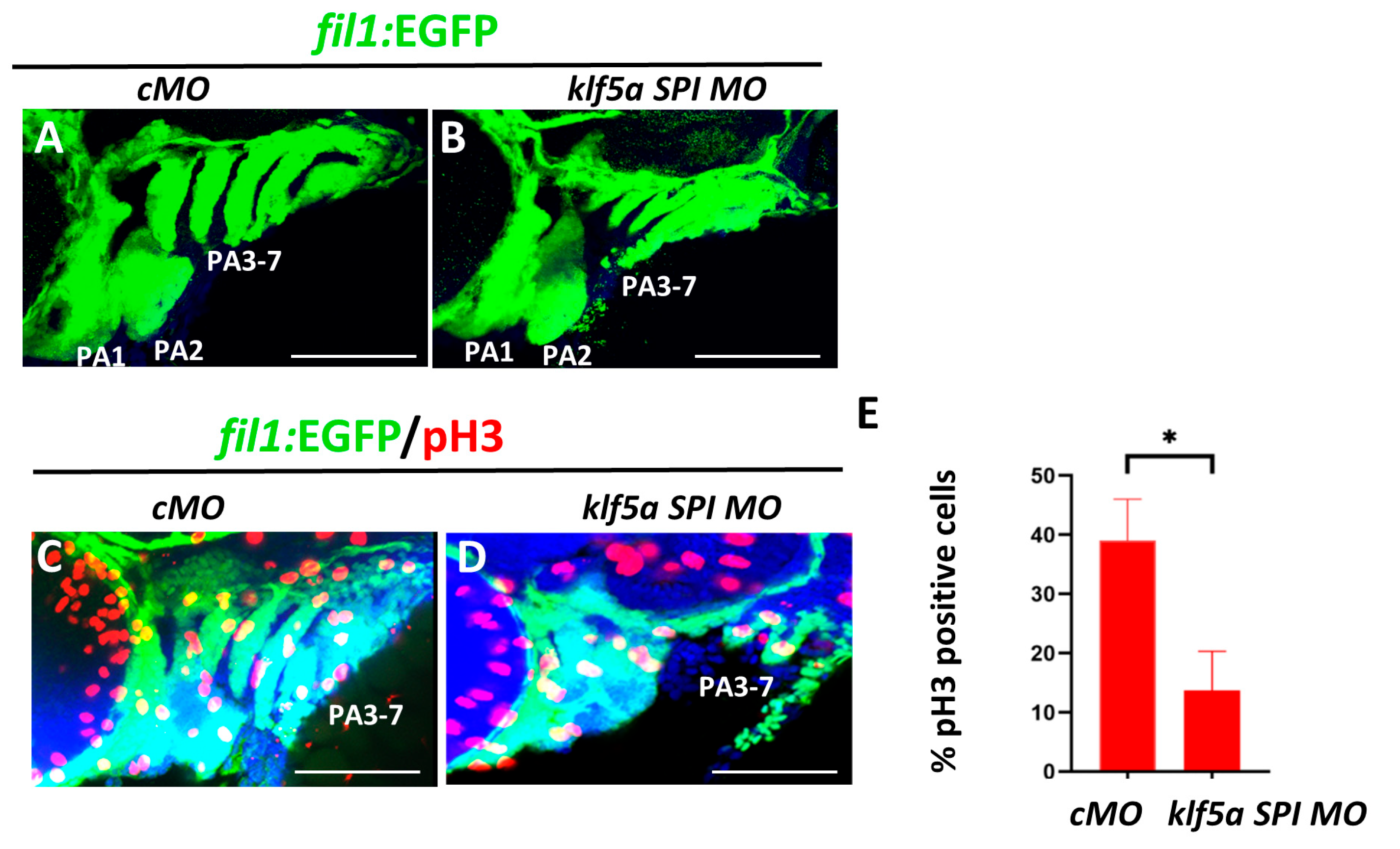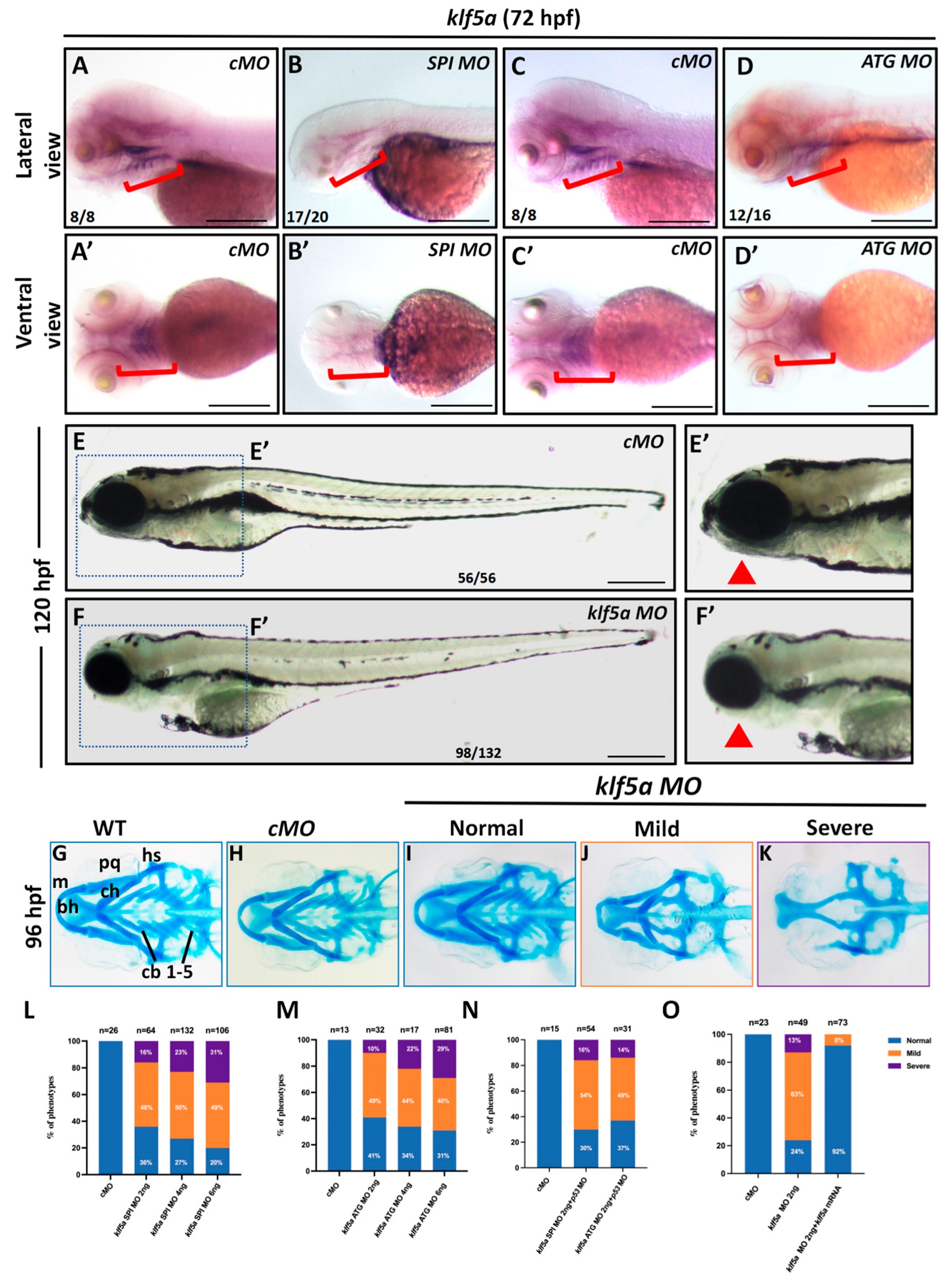 2.2. klf5a Knockdown Causes Severe Pharyngeal Cartilage Defects