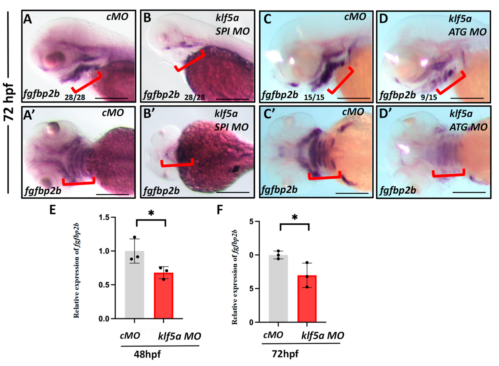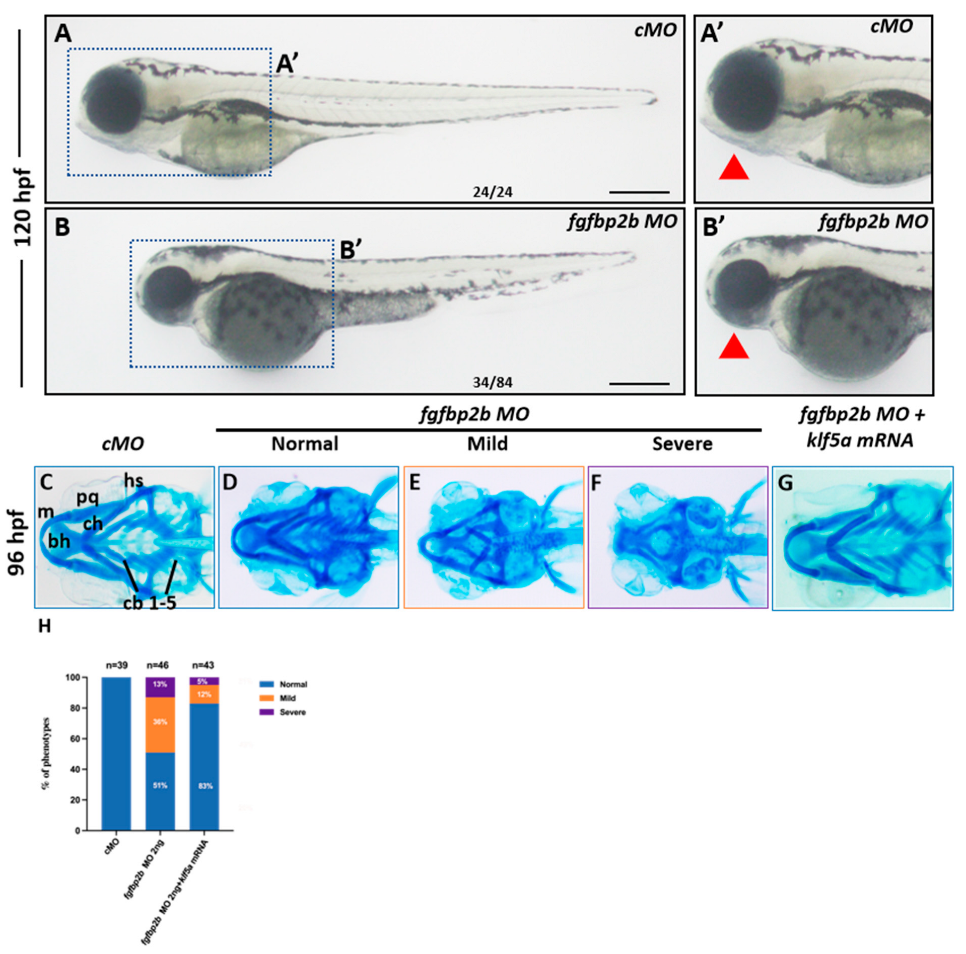 2.6. Klf5a Regulates Pharyngeal Cartilage Development via fgfbp2b