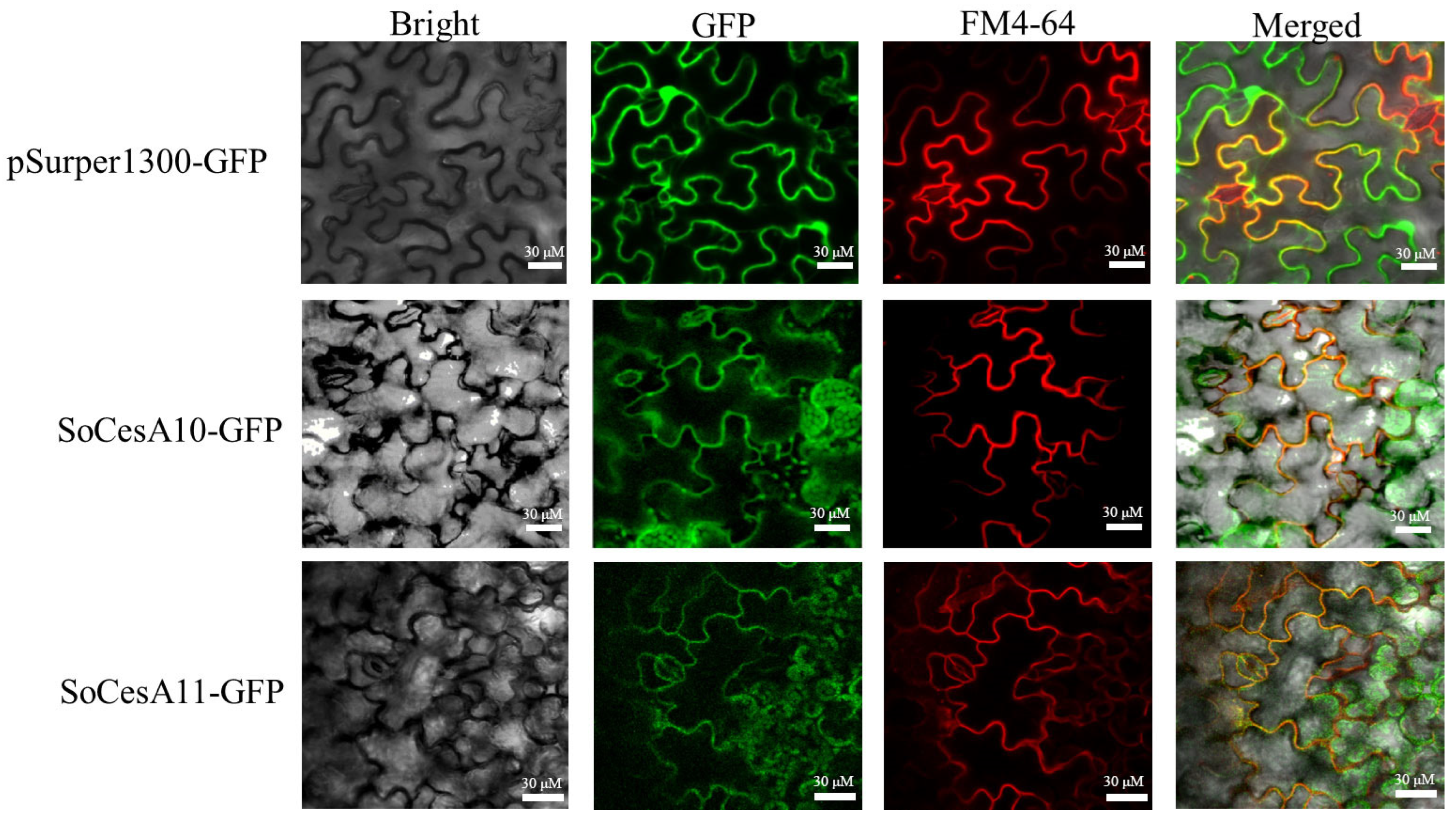 2.3. The Subcellular Localization of SoCesA10 and SoCesA11