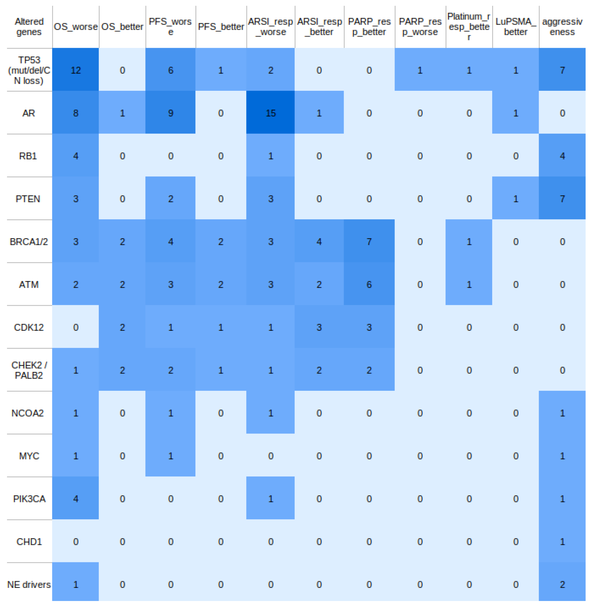 | Platinum sensitivity signal | TP53 alterations | Poor OS overall but better response to platinum chemo in AVPC context | [39] |