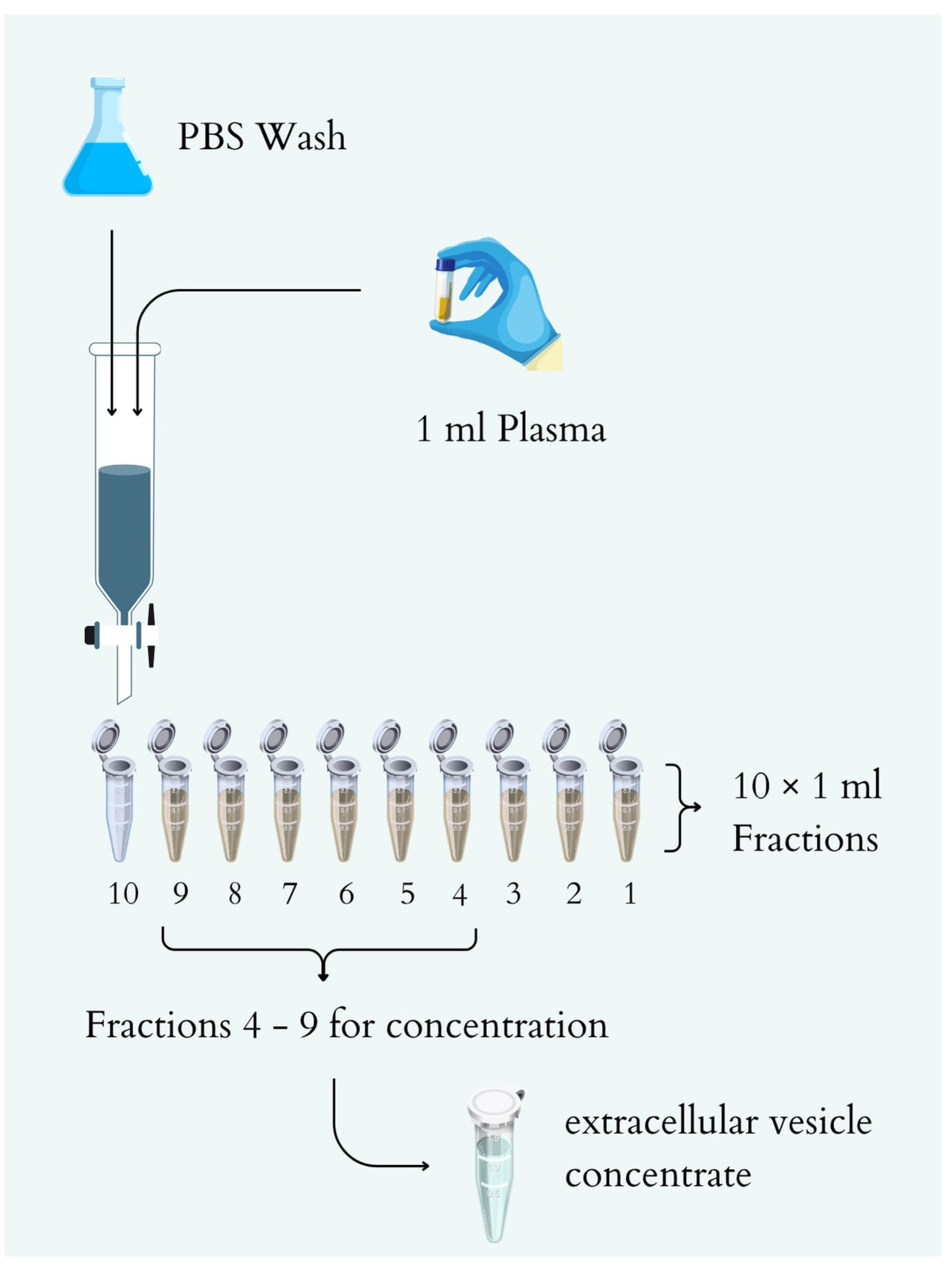 - Yang, Y.; Wang, Y.; Wei, S.; Zhou, C.; Yu, J.; Wang, G.; Wang, W.; Zhao, L. Extracellular vesicles isolated by size-exclusion chromatography present suitability for RNomics analysis in plasma. J. Transl. Med. 2021, 19, 104. [Google Scholar] [CrossRef] [PubMed]