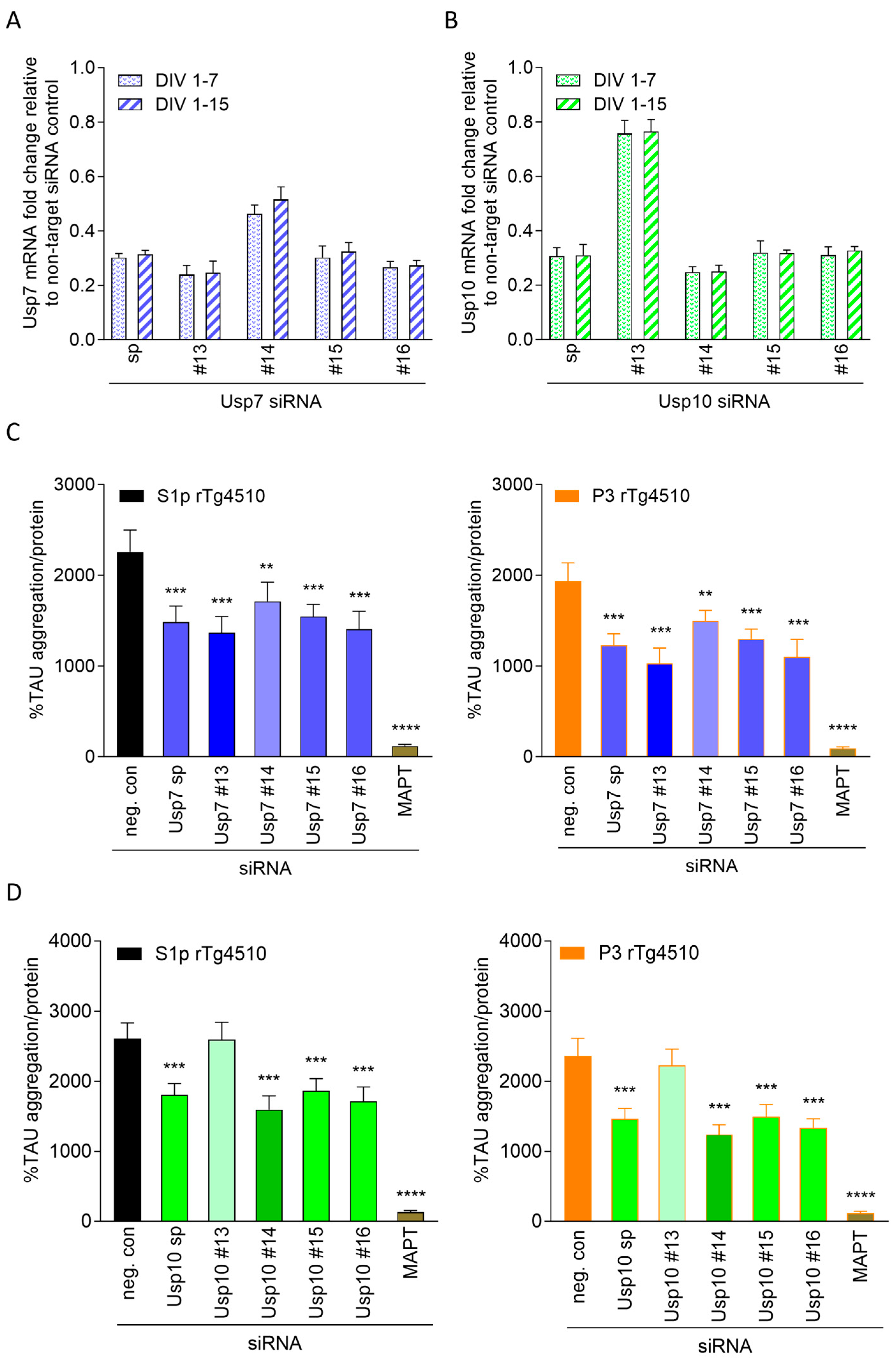 2.7. Knockdown and Inhibition of Usp7 and Usp10 Reduce Seeded TAU Aggregation in Organotypic Hippocampal Slice Cultures (OHSCs) from rTg4510 Mice