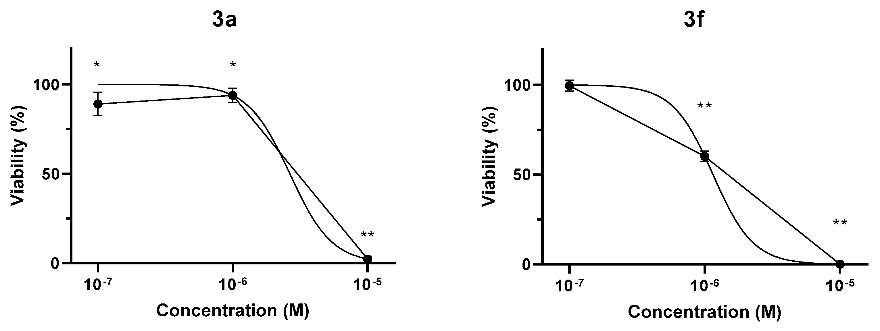 2.2.2. Antiproliferative Properties of Compounds 3i, 3j, and 5