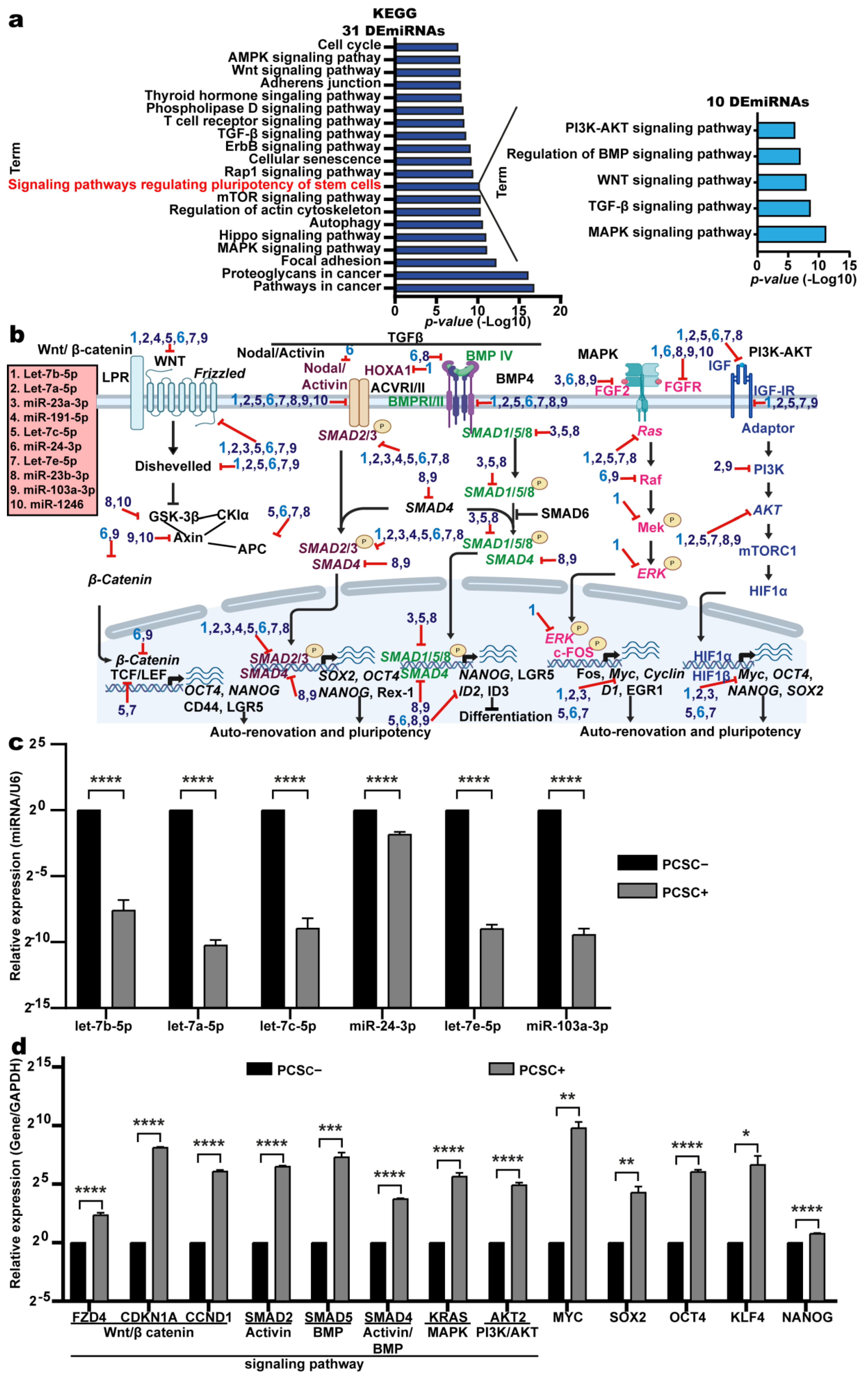 2.3. Of the 31 DEmiRNAs, 10 Are Involved in Signaling Pathways That Regulate Pluripotency and Differentiation in PCSCs