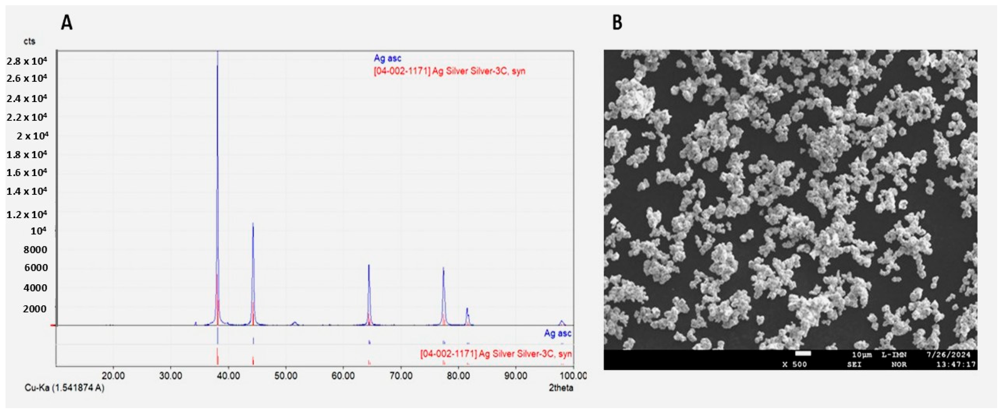 | Compound/Purity | Particle Size [nm] | Content of Ag [%] | Carrier/Concentration |