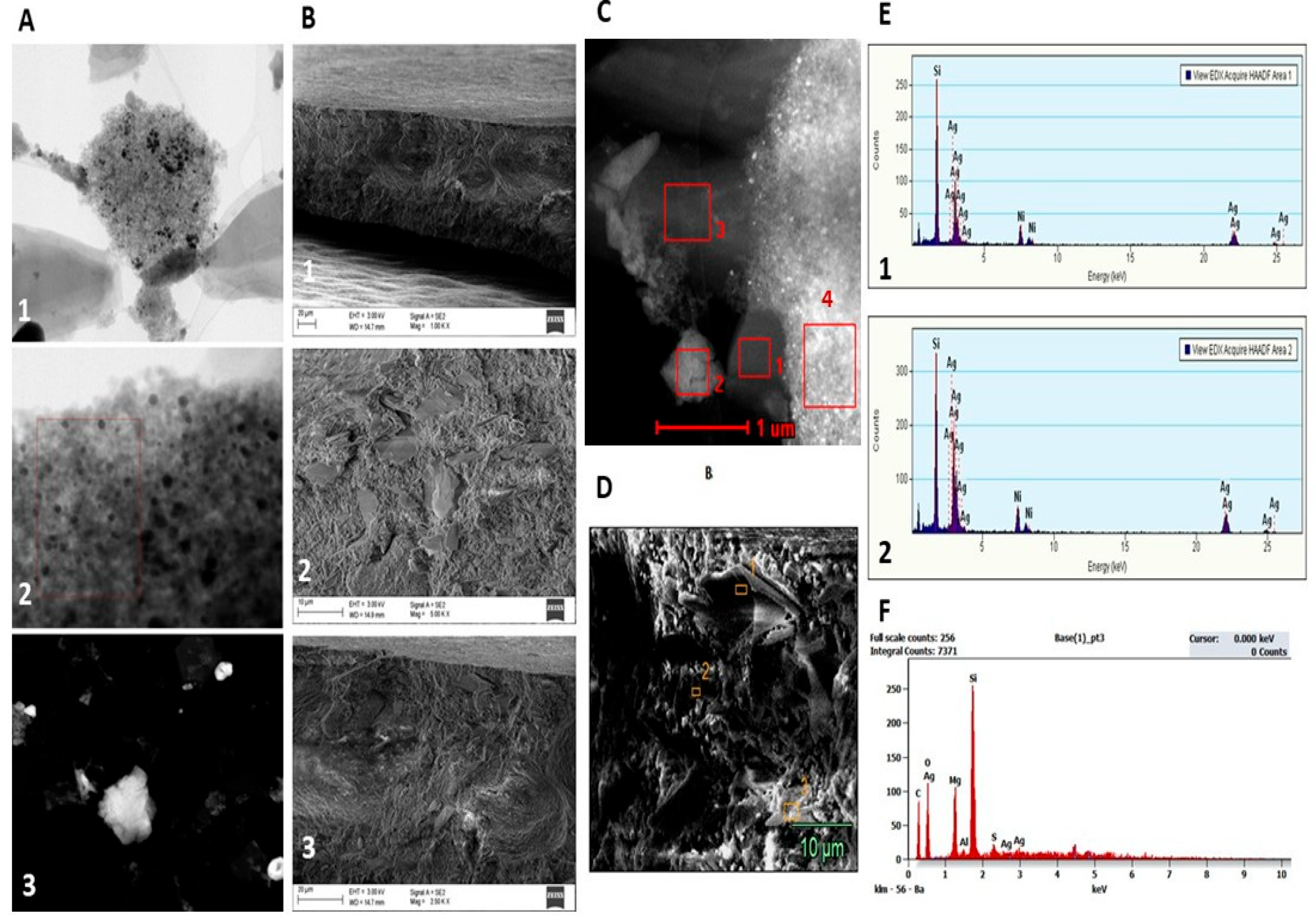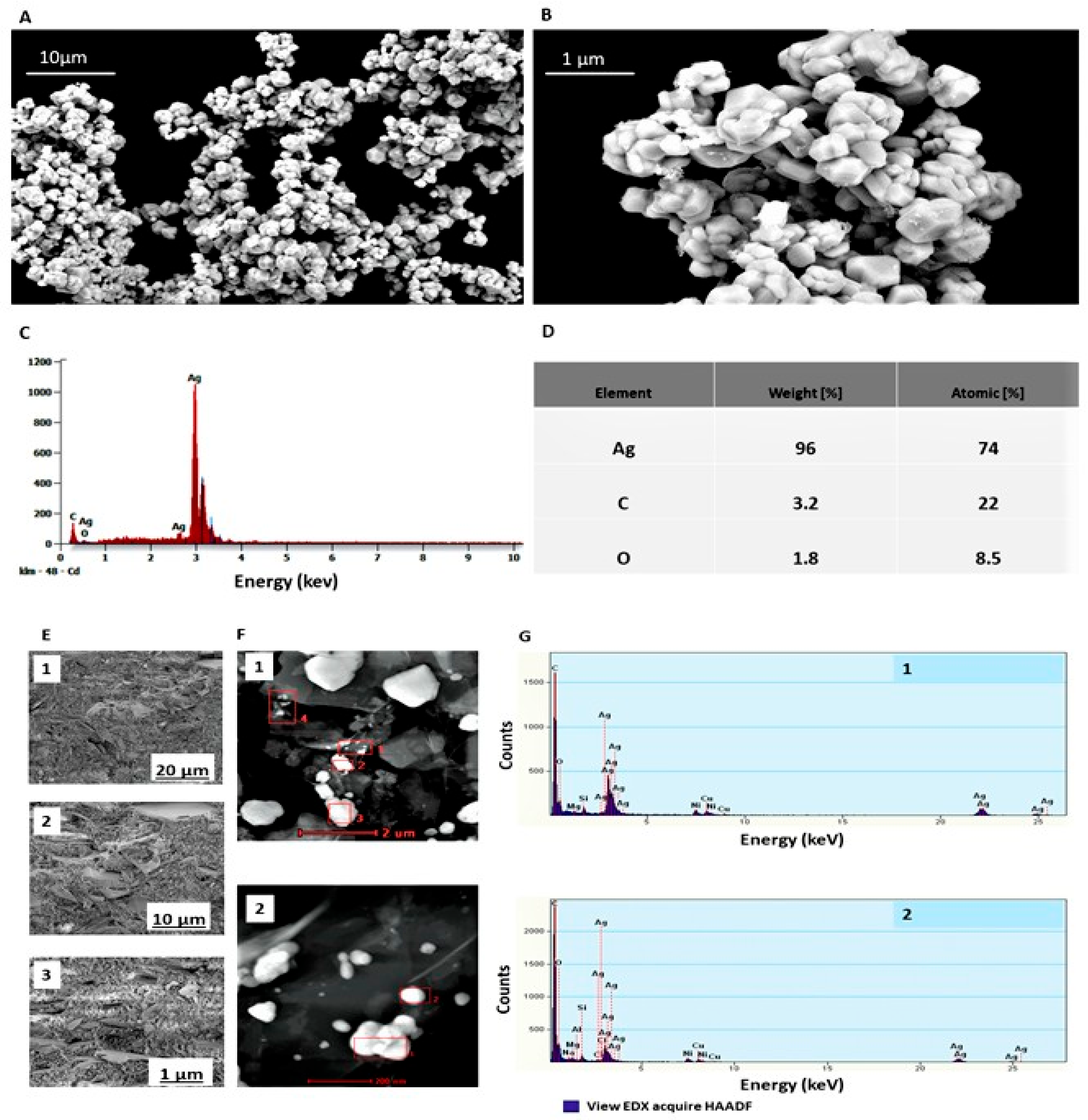 4.2.3. Characterisation of Synthesised Ag Powder and Gr Organic Coatings Using S/TEM, SEM and EDX