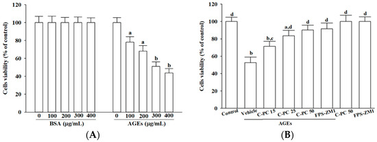 2.1. Phycocyanin Attenuates AGEs-Induced Cytotoxicity