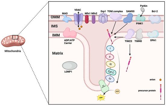 - Sabbir, M.G.; Dar, N.J.; Bhat, S.A.; Alanazi, H.H.; Perry, J. Editorial: Proteins and protein-complexes underlying mitochondrial structure-function and metabolism: Implications in diseases. Front. Cell Dev. Biol. 2024, 12, 1386787. [Google Scholar] [CrossRef]