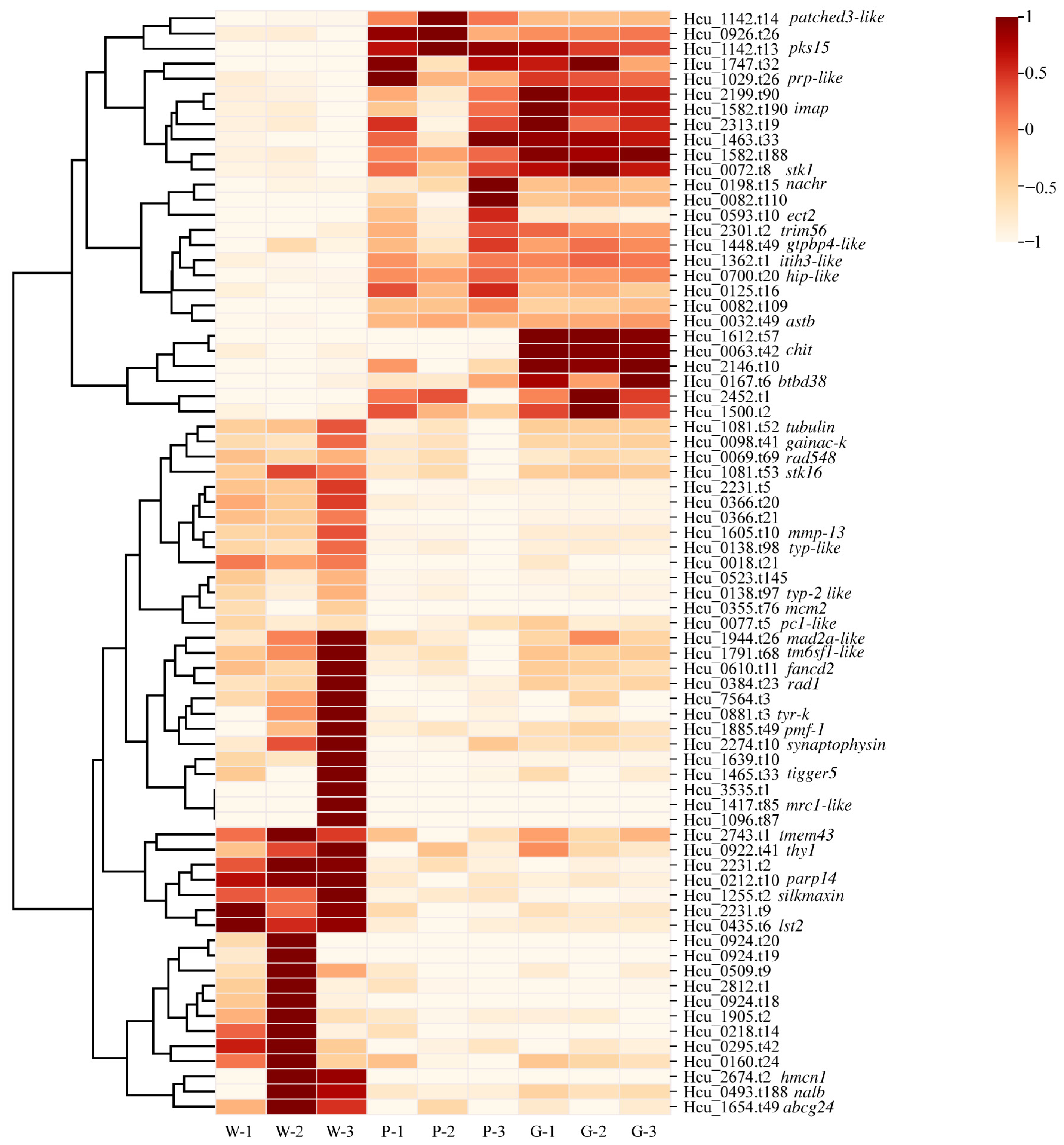 | Hcu_0138.t92 | Tyrosinase, tyr | 20.11 | 12.37 | 13.80 | |