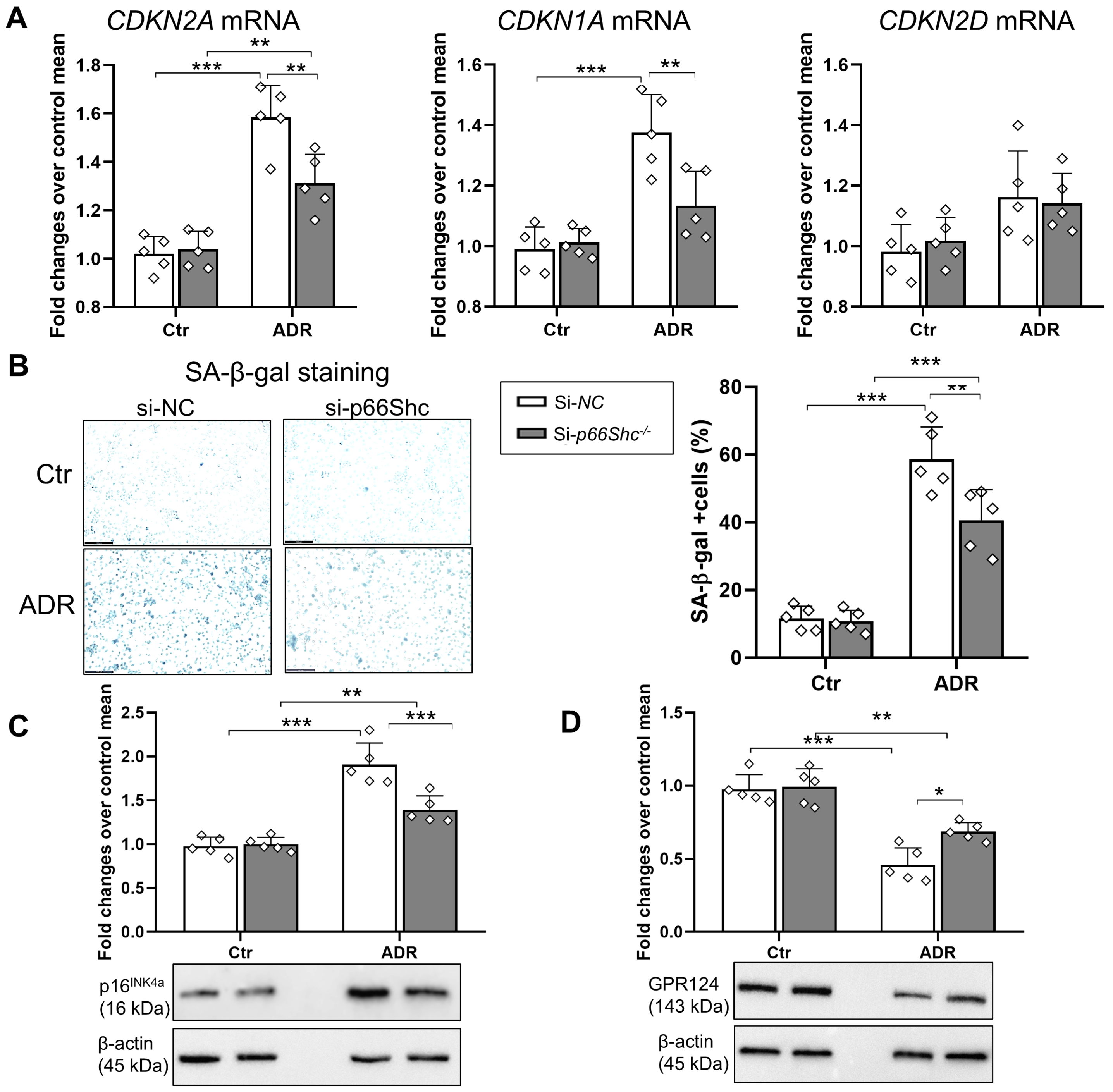 2.4. Effect of p66Shc Silencing on the Expression Levels of GPR124 and Senescence-Related Markers in Cultured Podocytes