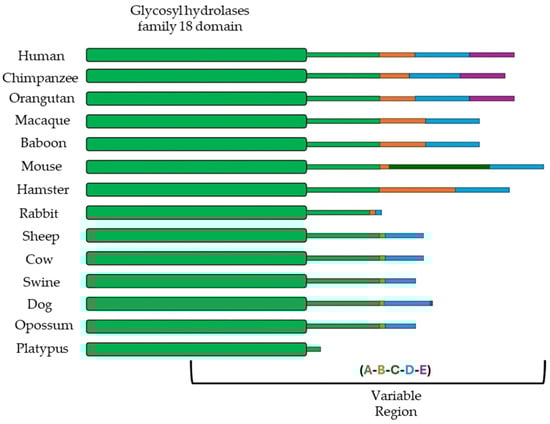 Schematic representation of the regions (A, B, C, D, and E) of the oviductal glycoprotein 1 (OVGP1) in different mammalian species. Figure modified from [].