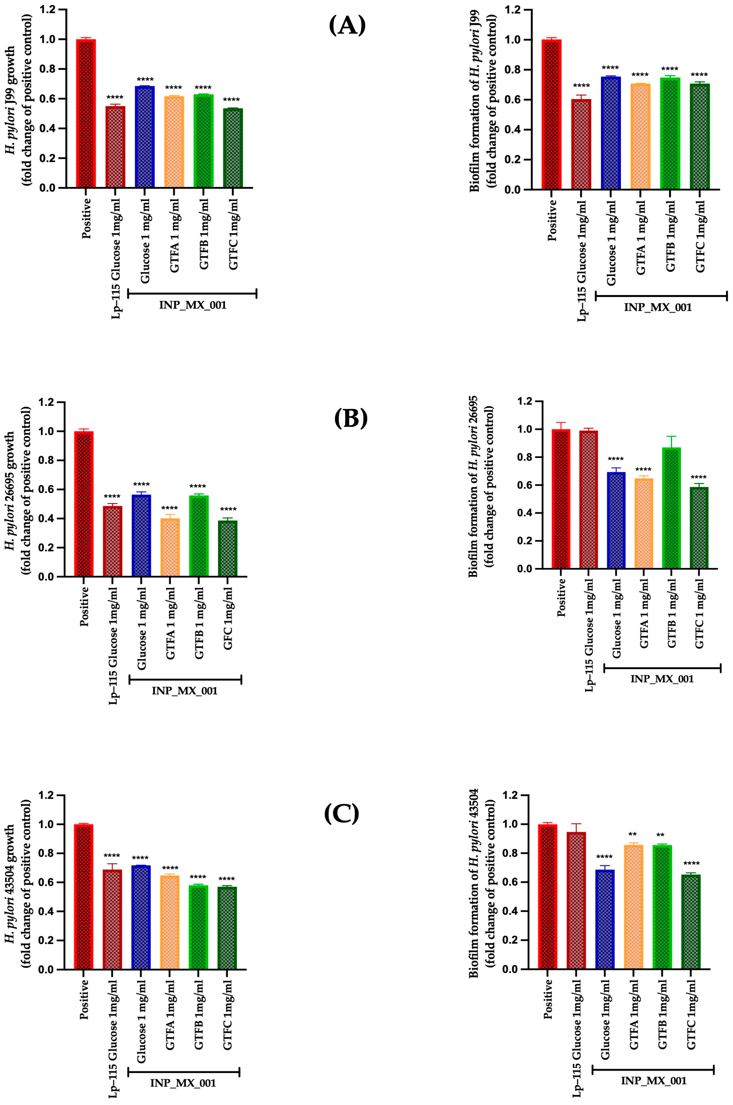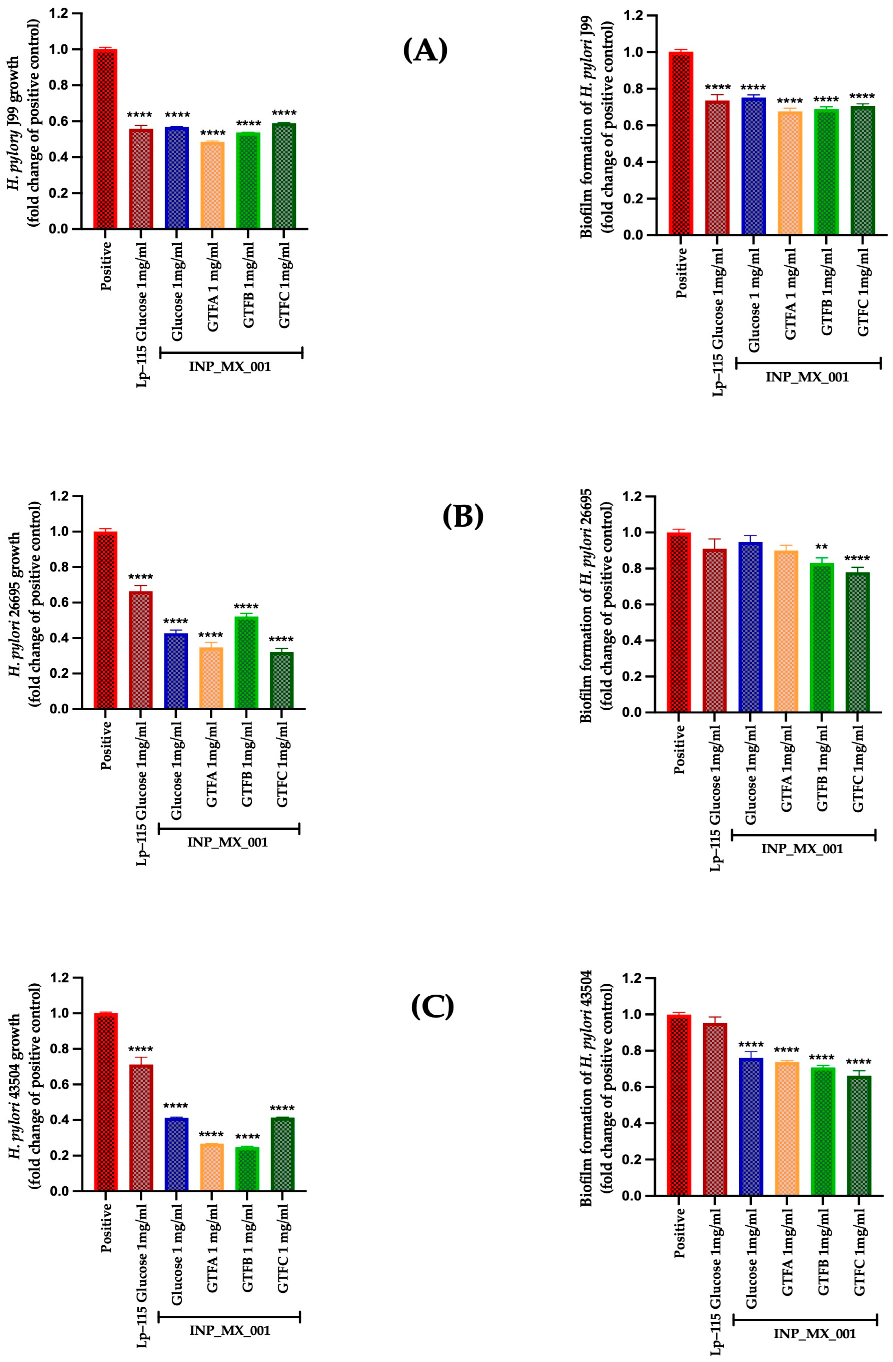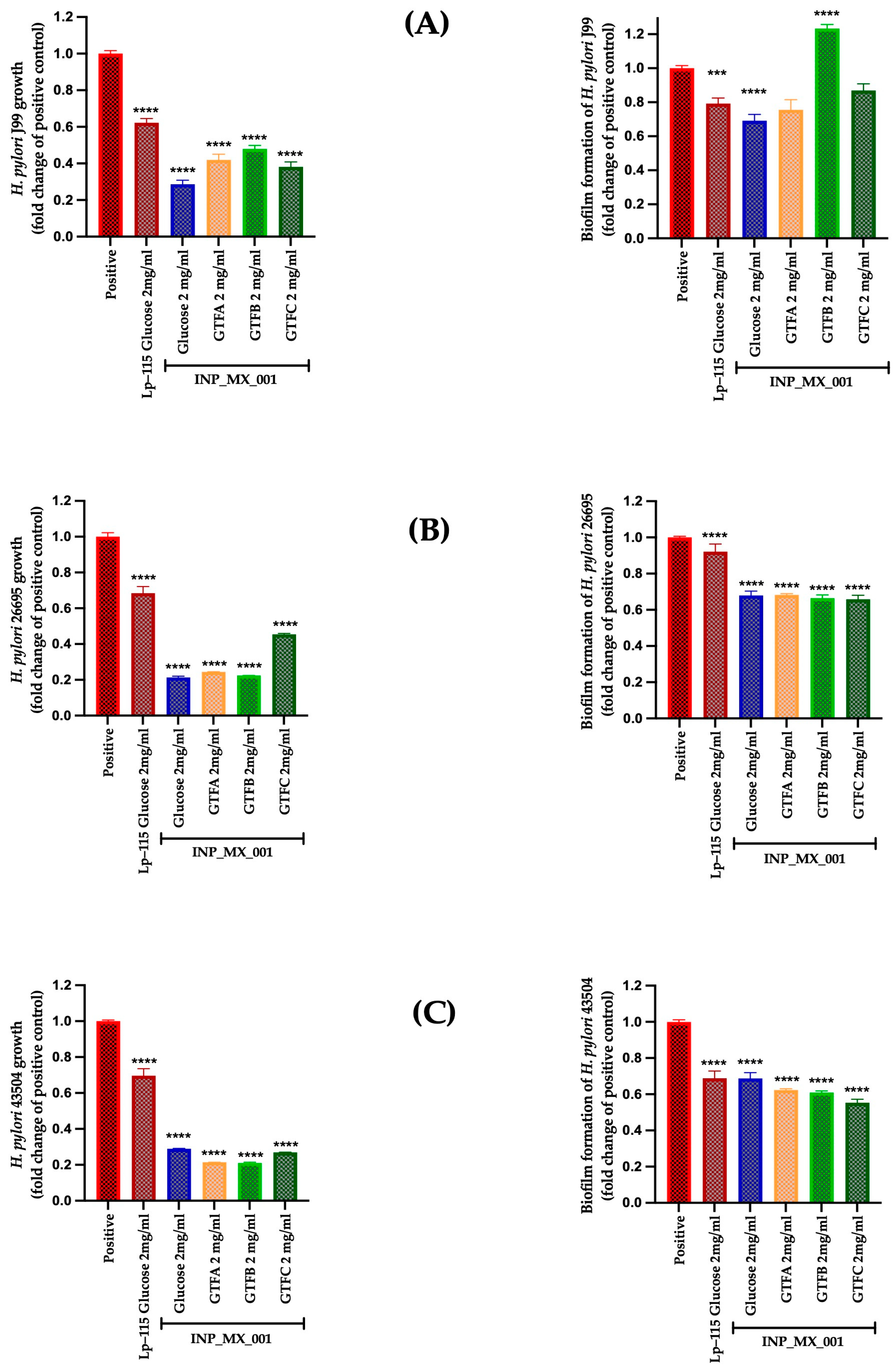 2.2. Prophylactic Effects Against H. pylori of EPSs Extracted from the INP_MX_001 LAB Strain Using the Different GTFs as Carbon Sources