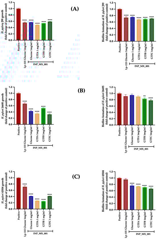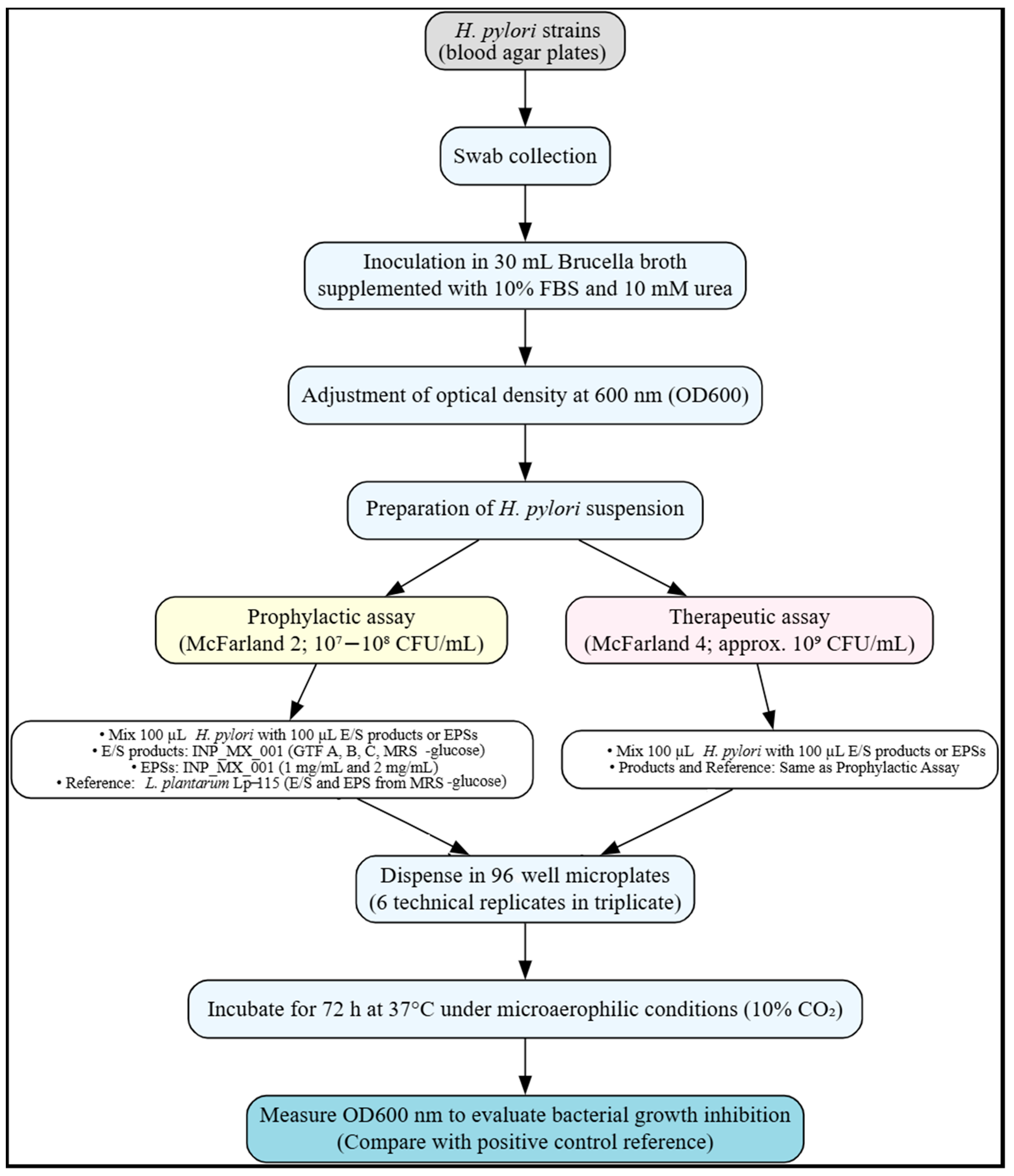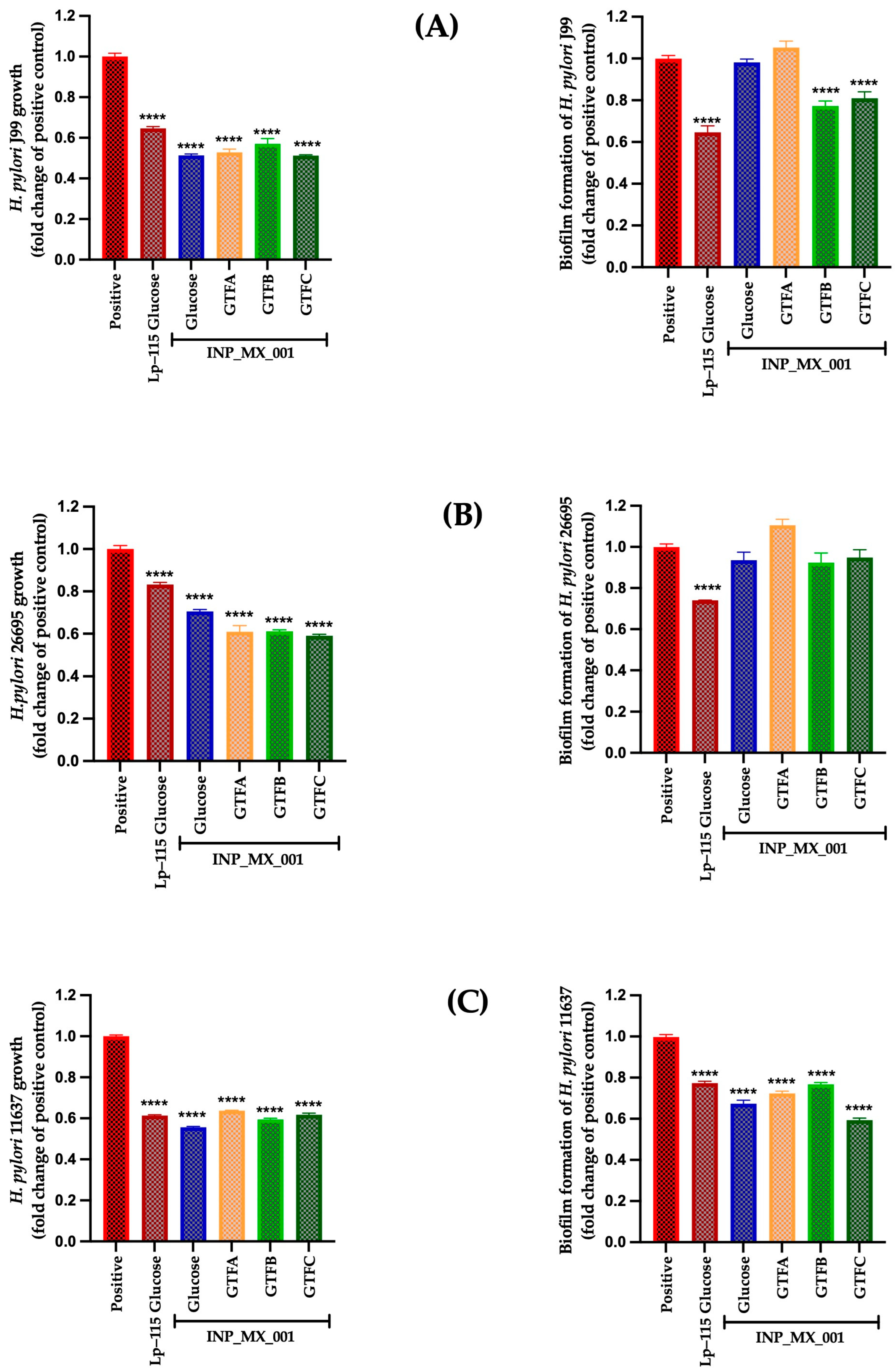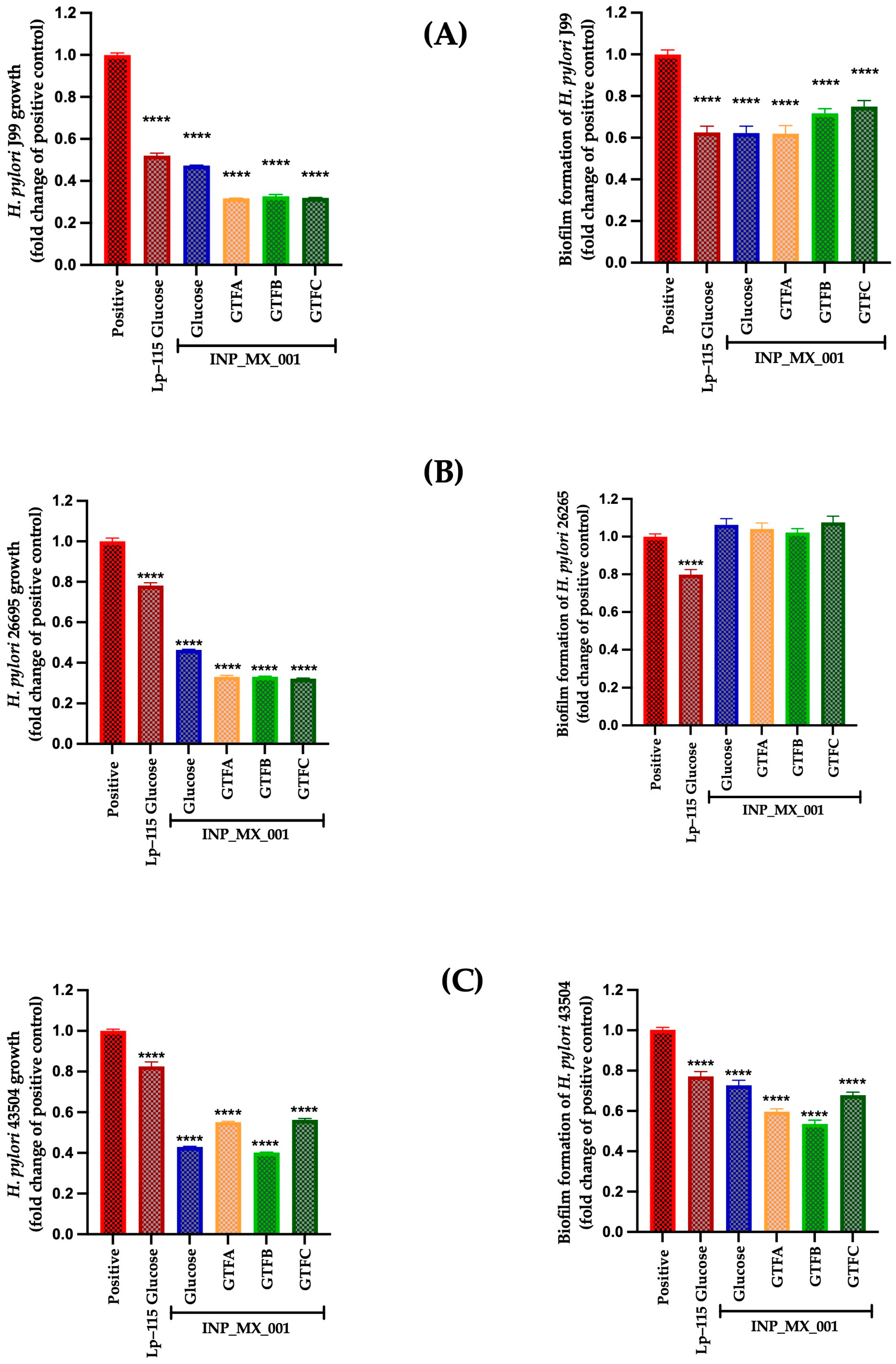 2.2. Prophylactic Effects Against H. pylori of EPSs Extracted from the INP_MX_001 LAB Strain Using the Different GTFs as Carbon Sources