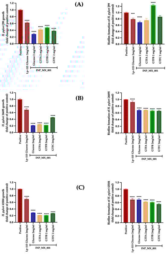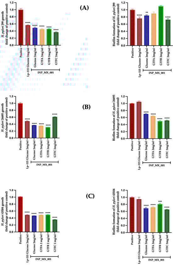 2.3. Therapeutic Effects of 1 and 2 mg/mL of EPSs Extracted from the INP_MX_001 LAB Strain Using the Different GTFs as Carbon Sources Against H. pylori