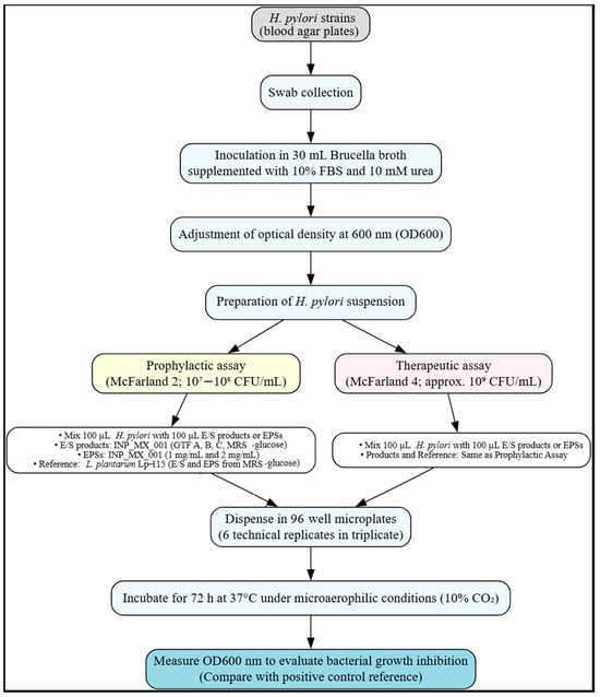APA StyleSanhueza-Carrera, E. A., Hernández-Delgado, N. C., Romo-González, C., Castro-De la Mora, C., Mendoza-Camacho, C., Fernández-Lainez, C., & López-Velázquez, G. (2025). Agave Fructans as a Carbon Source to Develop a Postbiotic-Based Strategy for the Prophylaxis and Treatment of Helicobacter pylori Infection. International Journal of Molecular Sciences, 26(22), 11119. https://doi.org/10.3390/ijms262211119