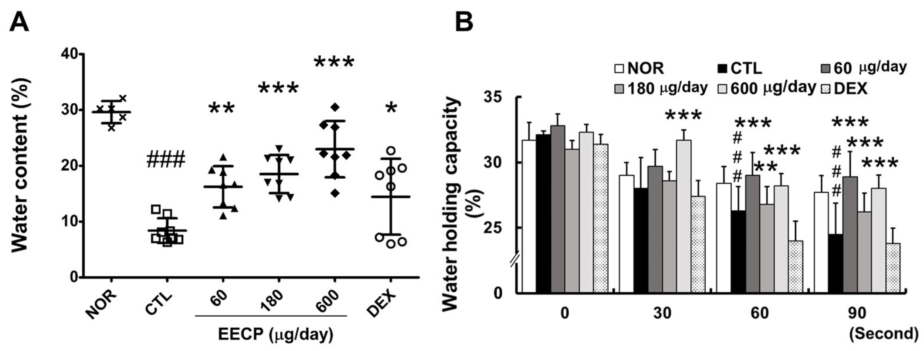 2.3. EECP Increased Skin Water Content and Water-Holding Capacity