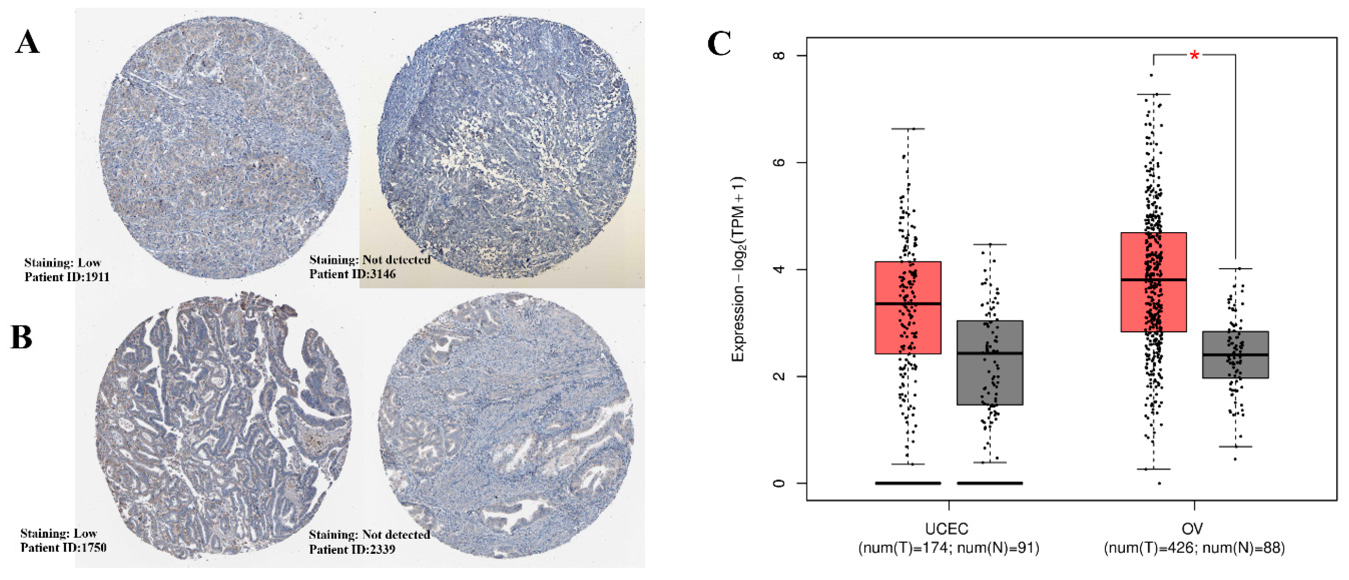 2.1. Expression Patterns of the Gene Across OV and UCEC