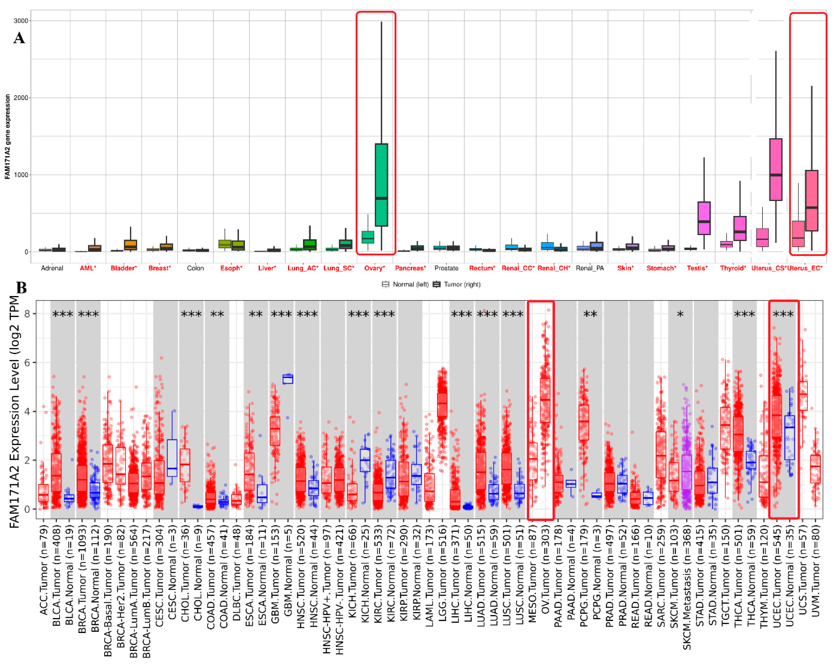 2.8. GEO-Based Expression Analysis FAM171A2 at Across Gynecologic Cancer Cohorts